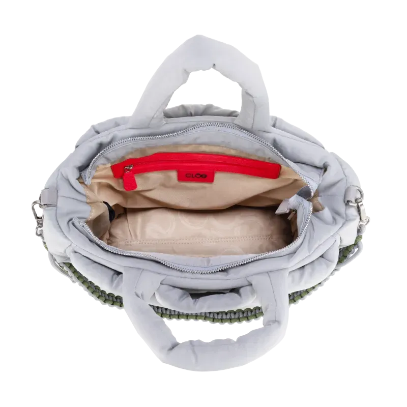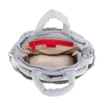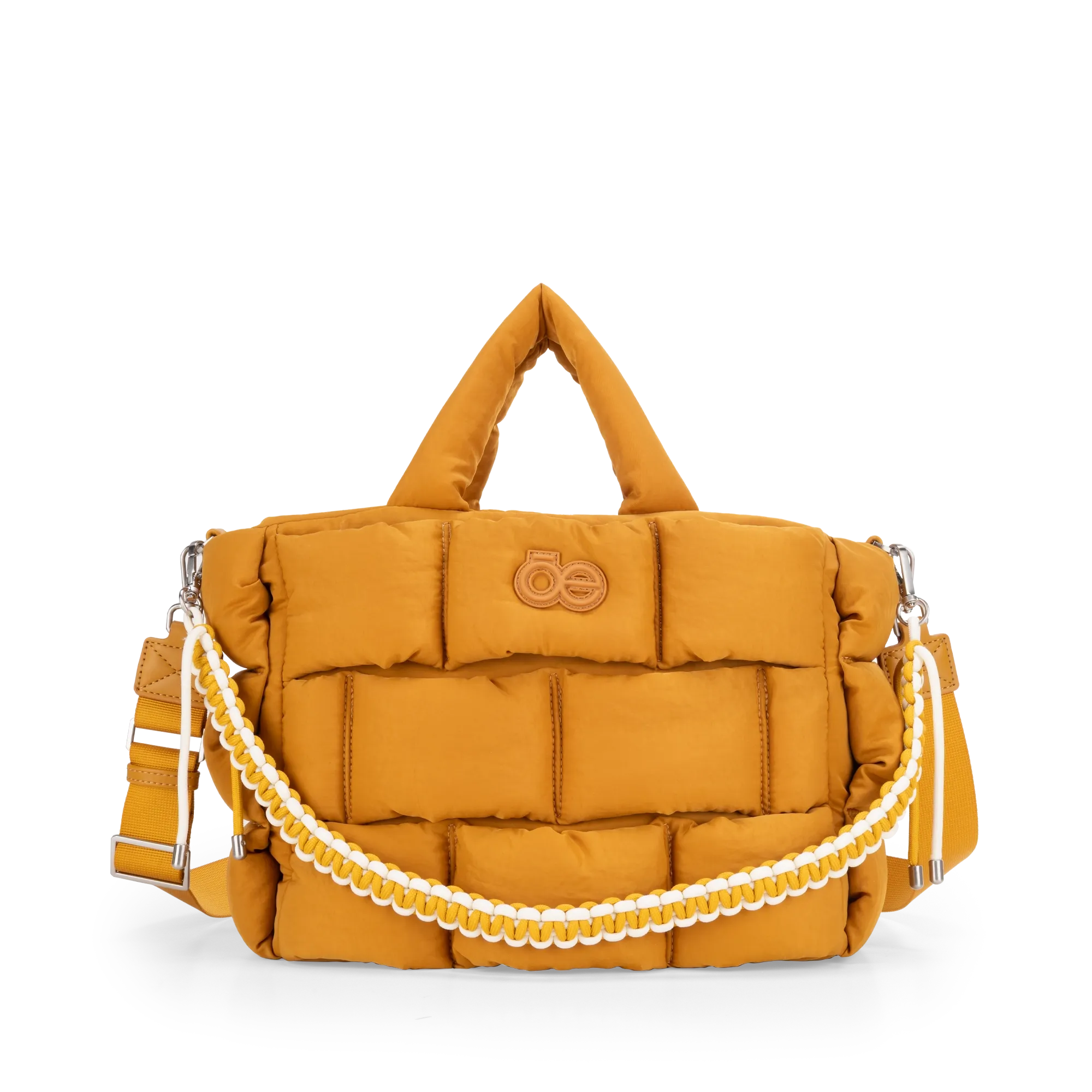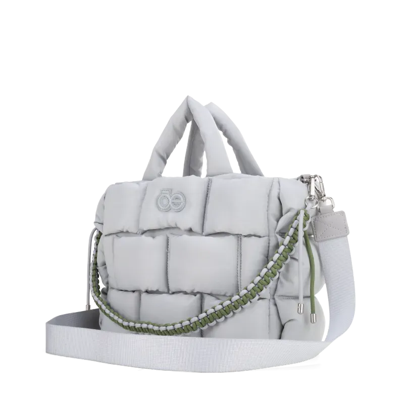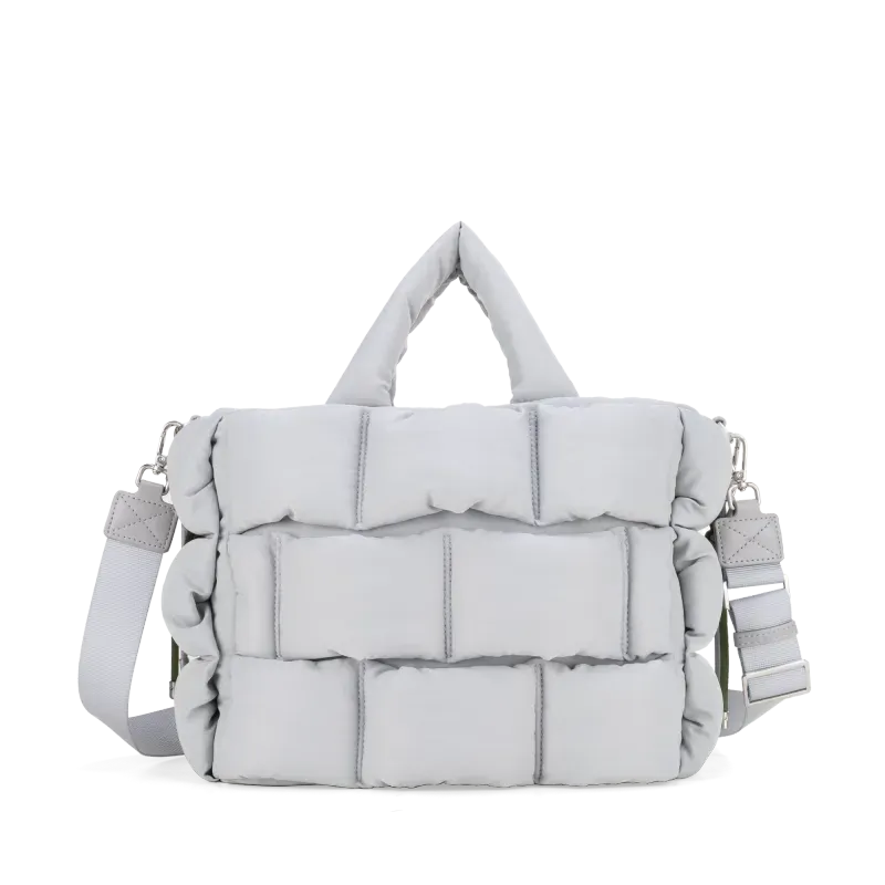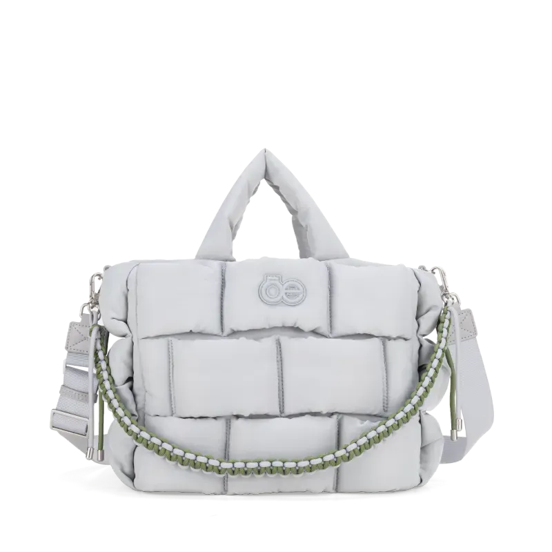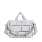 Bolso Tote hecho con material textil. Diseño acolchado de alta tendencia. Cuenta con asa larga ajustable. Asa decorativa desprendible. Tiene cierre metálico de larga duración.