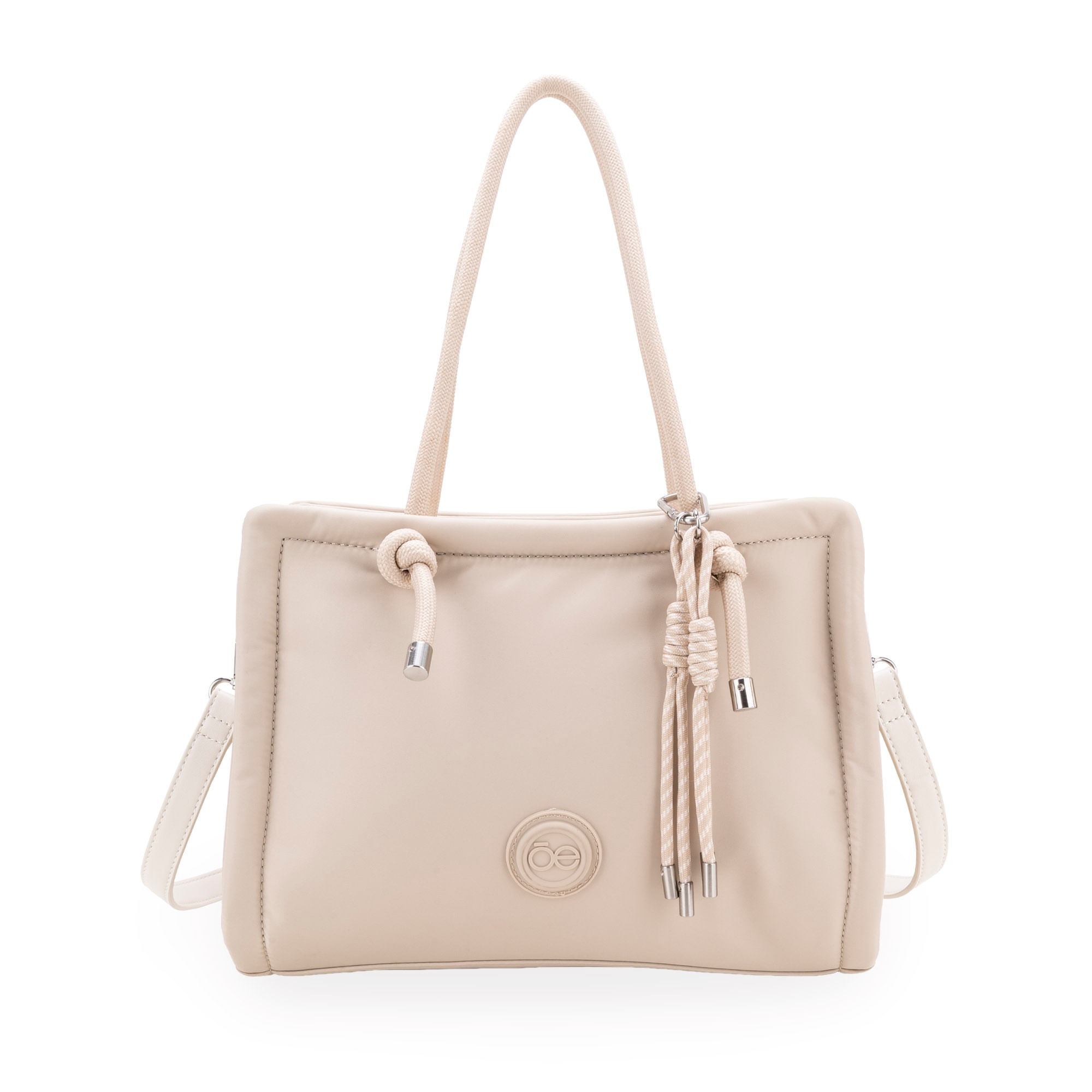 Bolsa Tote hecha de material textil. Cuenta con cierre metálico de larga duración. Asa larga ajustable y removible. Rubber de monograma. Incluye charm decorativo desprendible.