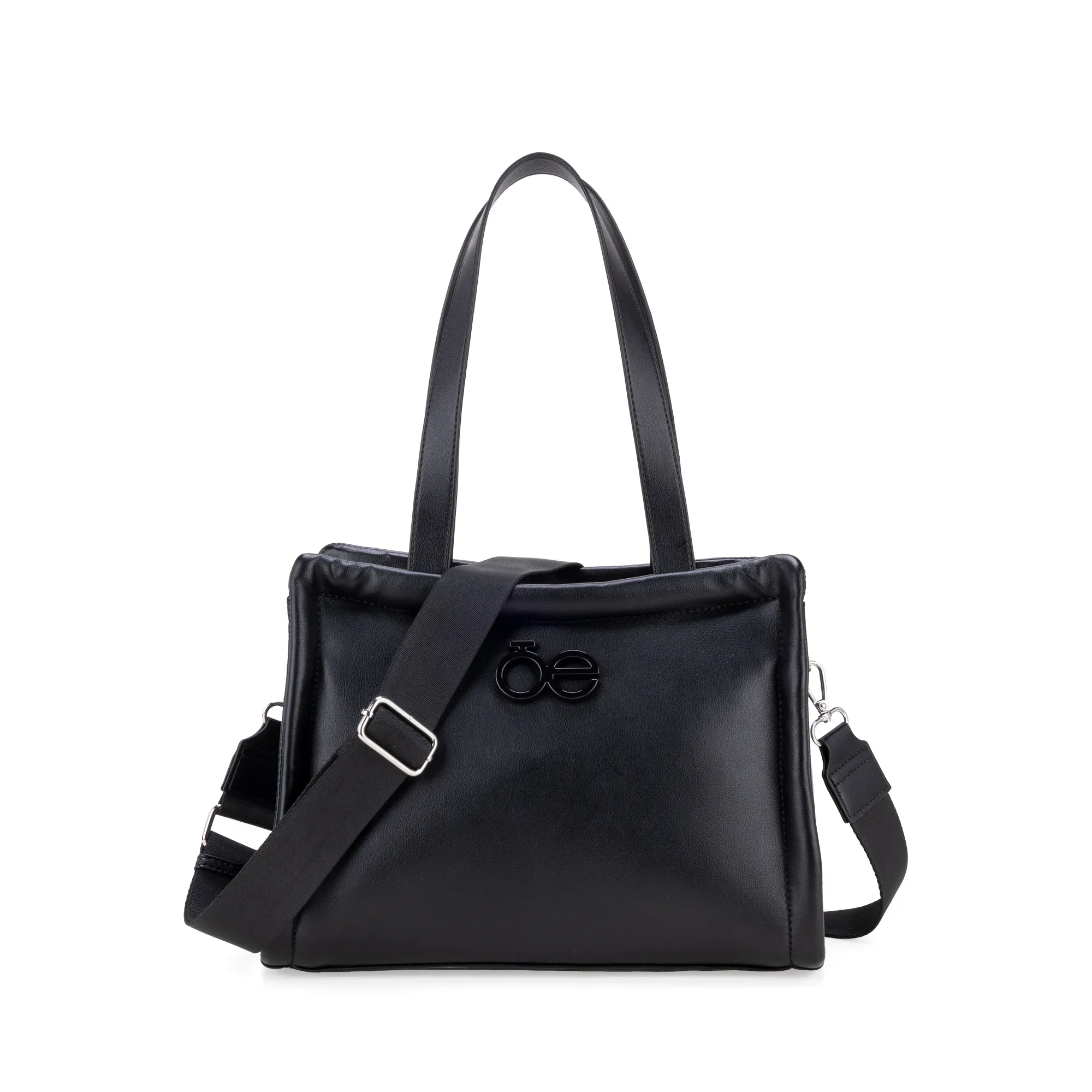 Bolsa Tote hecha con material vegano. Cuenta con asa larga ajustable desprendible. Tiene herajje de monograma.