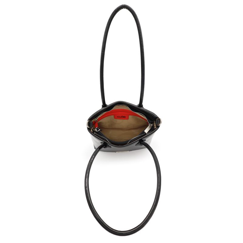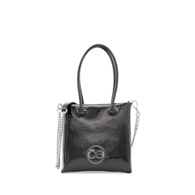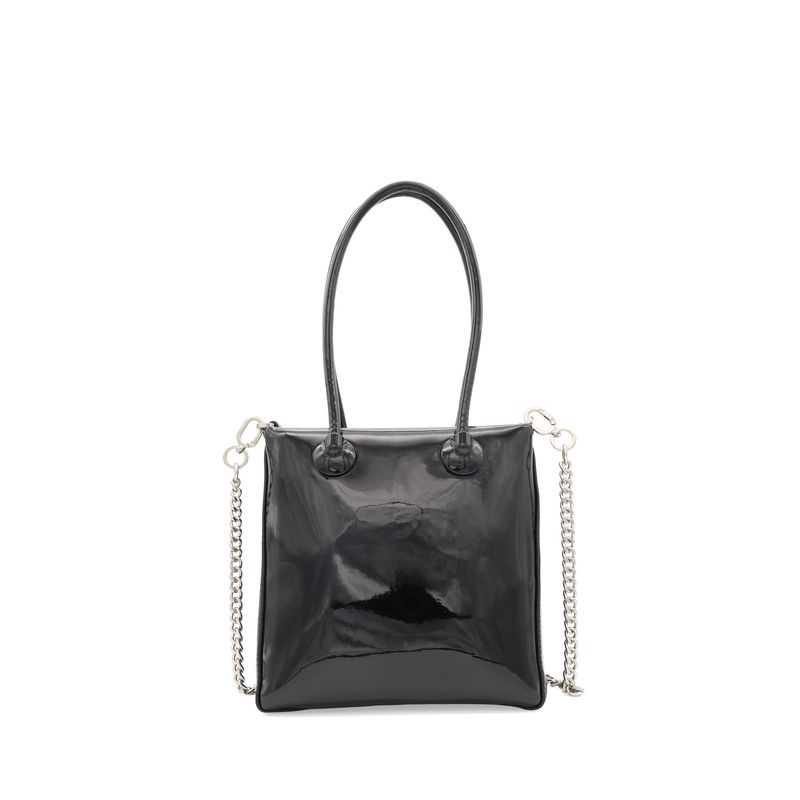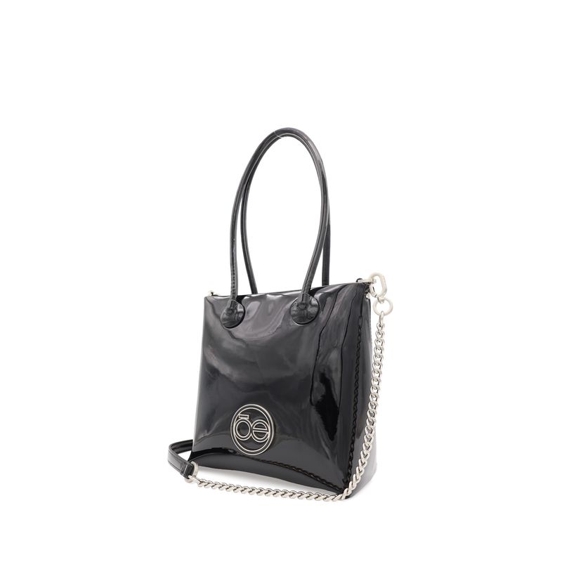 Bolsa Tote Mediana Charol Asa De Cadena Color Negro