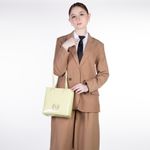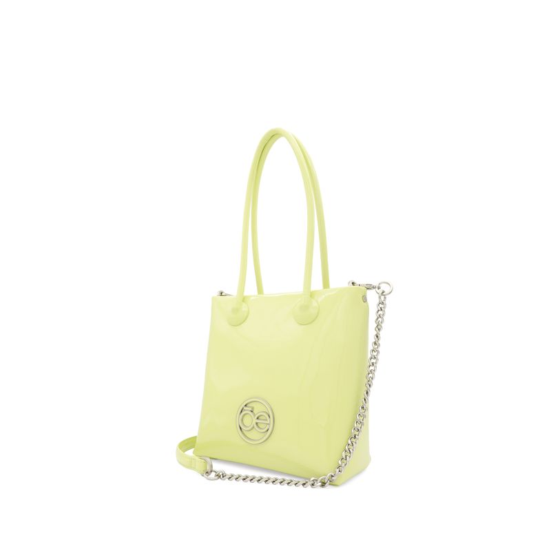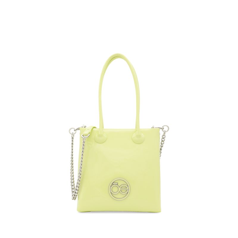Bolso Tote hecho con material charol. Cuenta con cierre metálico de larga duración. Tiene herraje metálico de monograma. Asa larga de cadena.