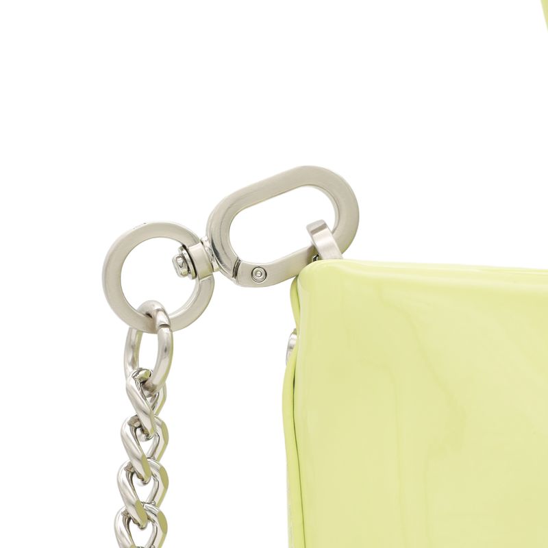Bolsa Tote Mediana Charol Asa De Cadena Color Verde Olivo