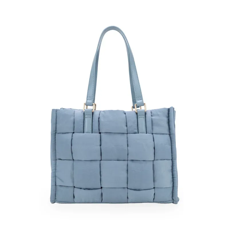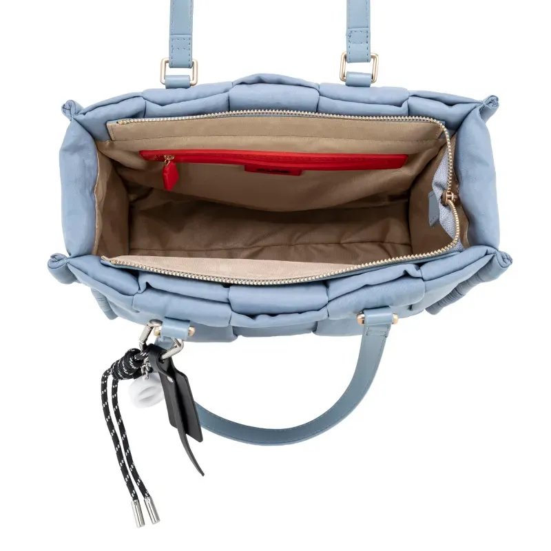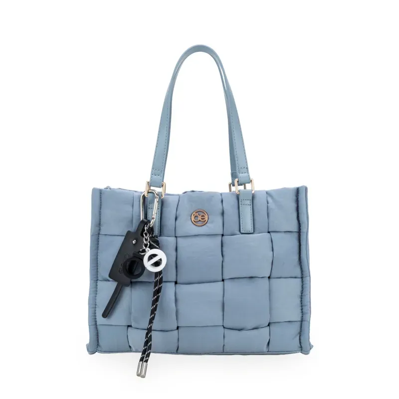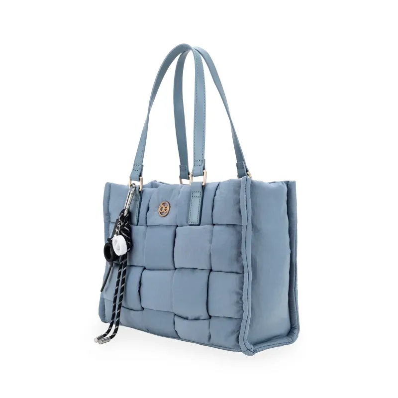 Bolso Tote hecho con material textil. Cuenta con asa corta. Herraje de monograma. Incluye charm decorativo desprendible. Cierre metálico de larga duración.
