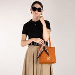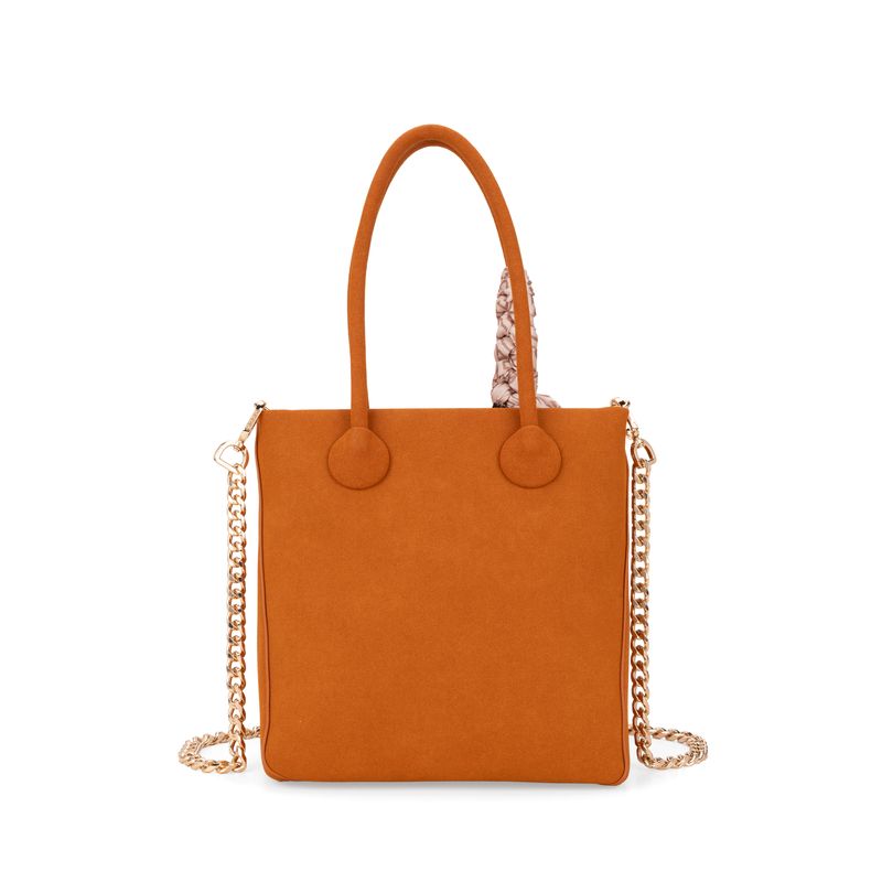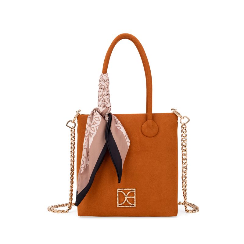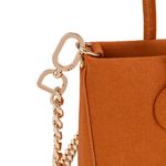Bolso hecho con material vegano. Cuenta cierre metálico de larga duración. Masacada desprendible. Herraje metálico de monograma. Asa de cadena larga desprendible.