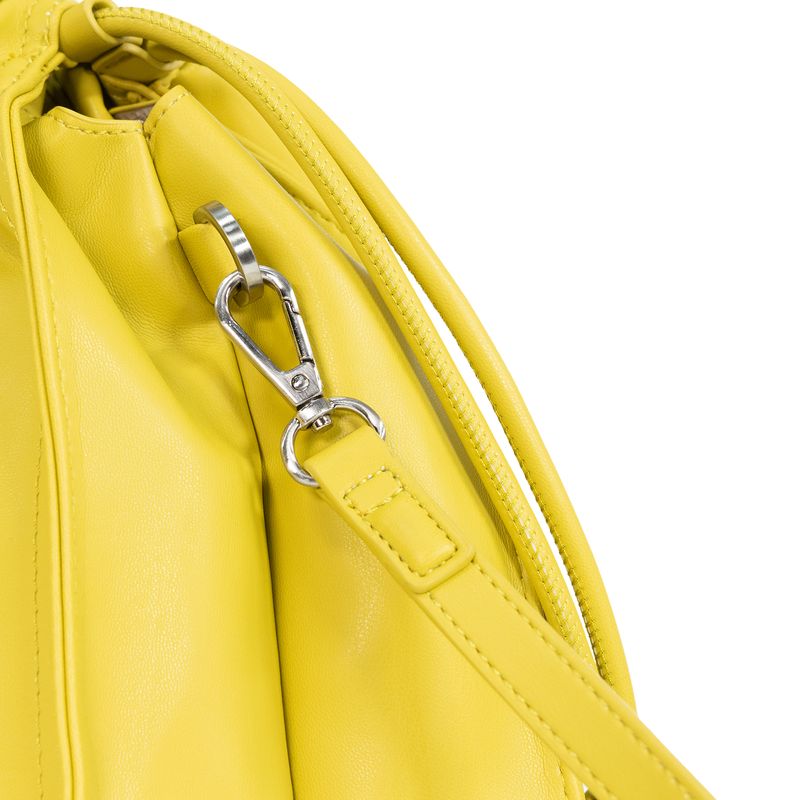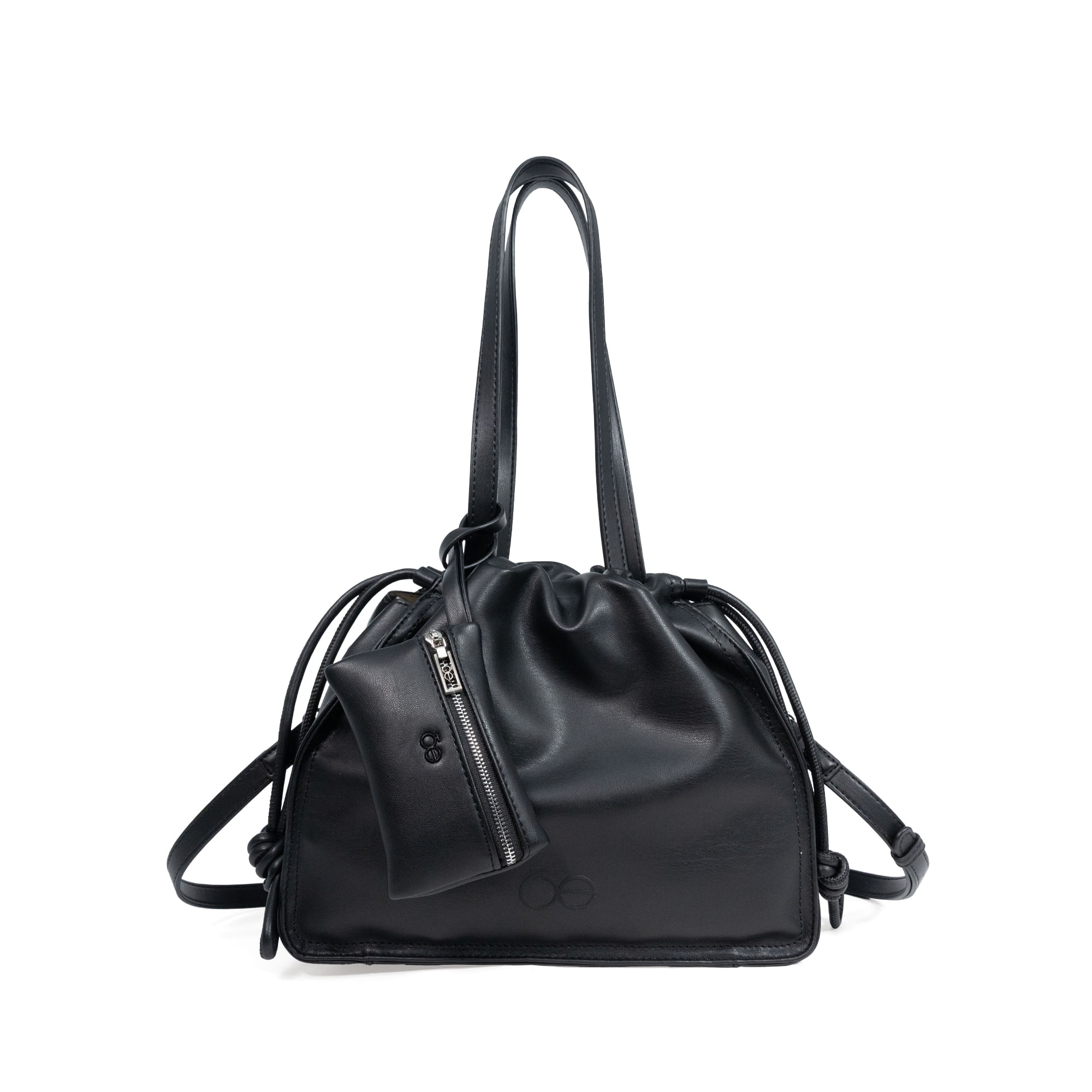 Bolso tote hecho con material vegano apariencia piel. Diseño plisado en parte superior. Jaretas Laterales ajustables. Monedero desprendible. Asa larga ajustable y removible.