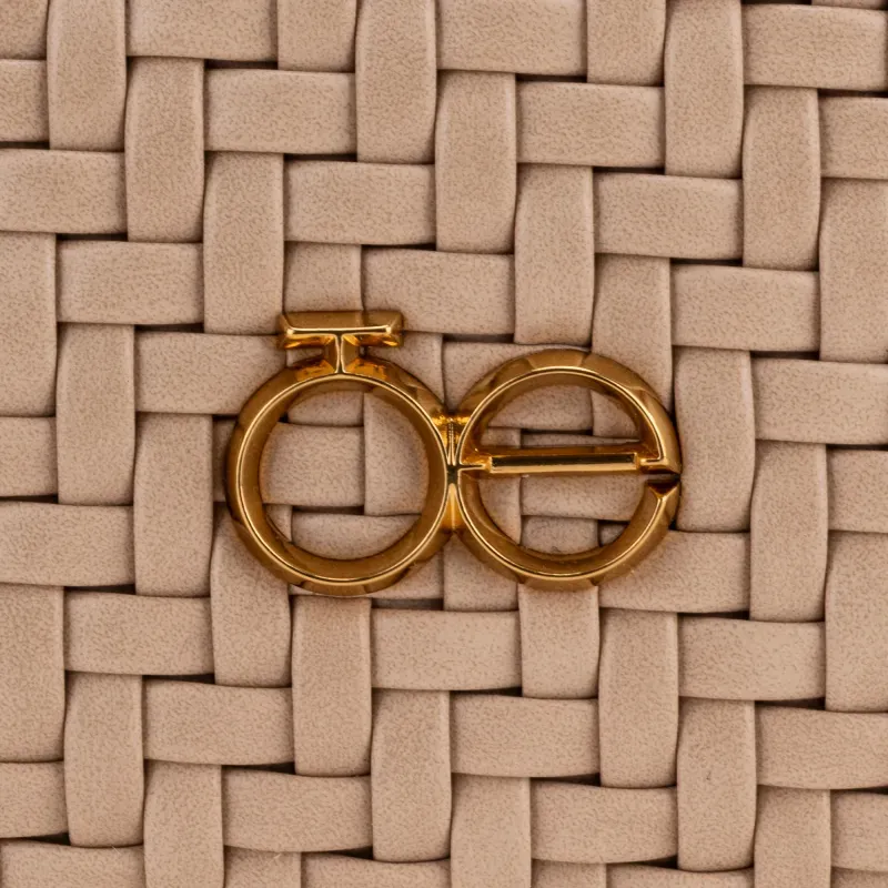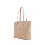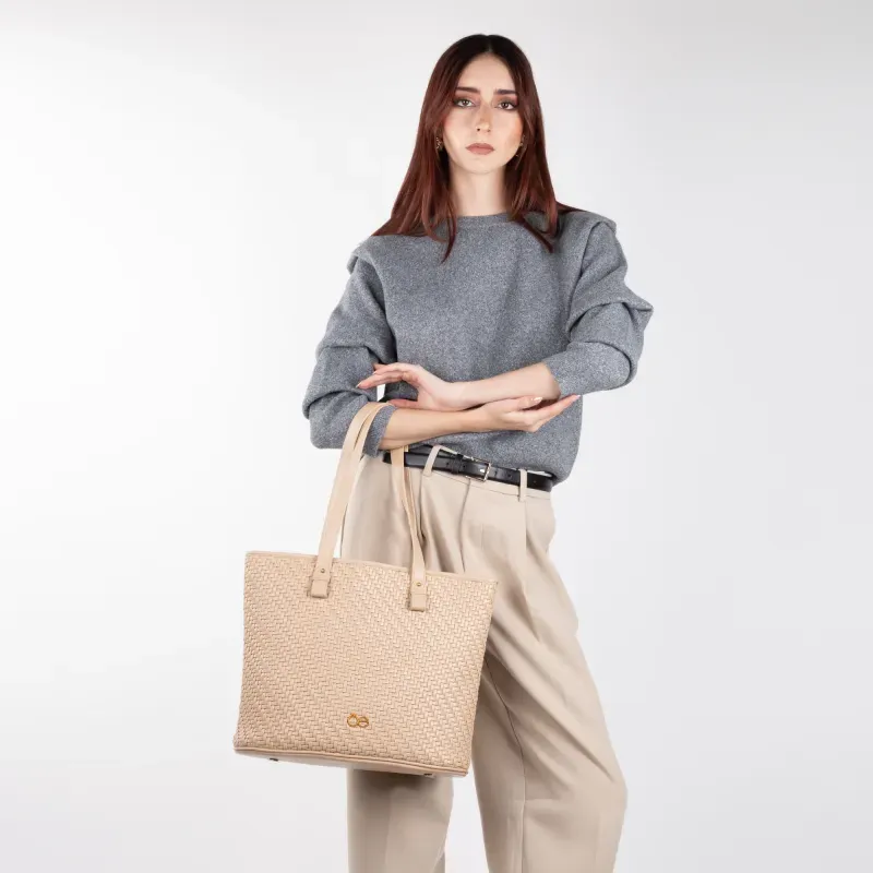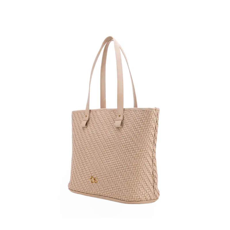Bolso Tote hecho con material vegano. Cuenta con cierre metálico de larga duración. Cuenta con asa corta. Herraje de monograma.