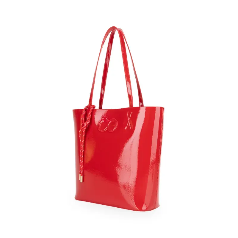 Bolsa Tote Mediano Con Charm Decorativo Color Rojo