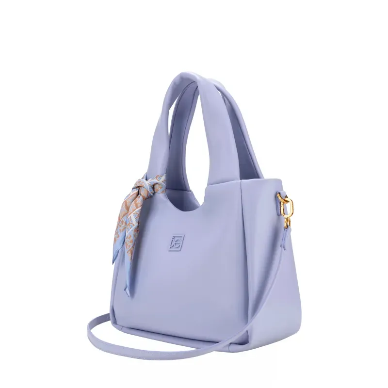 Bolso Bowling hecho con material vegano. Cuenta con asa larga ajustable y desprendible. Herraje de monograma. Cierre metálico de larga duración. Incluye mascada multiusos removible.