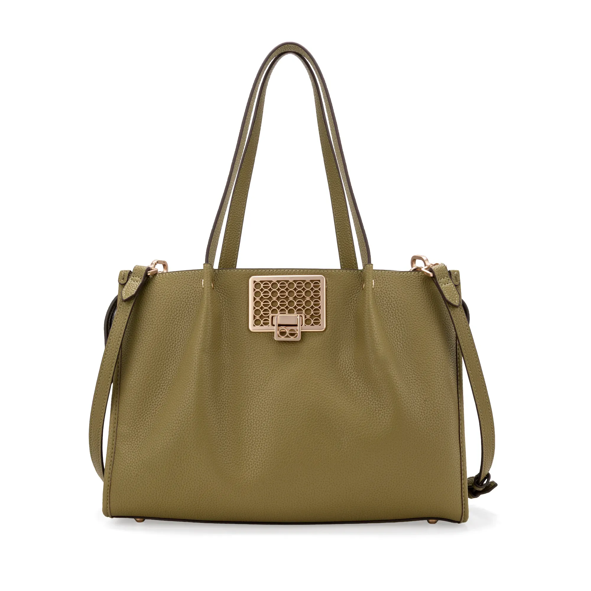Bolso Satchel hecho con material vegano. Cuenta con asa larga ajustable y desprendible. Asa de hombro. Tiene detalle de broche metálico lateral. Cierre metálico de larga duración. Herraje metálico de monograma.