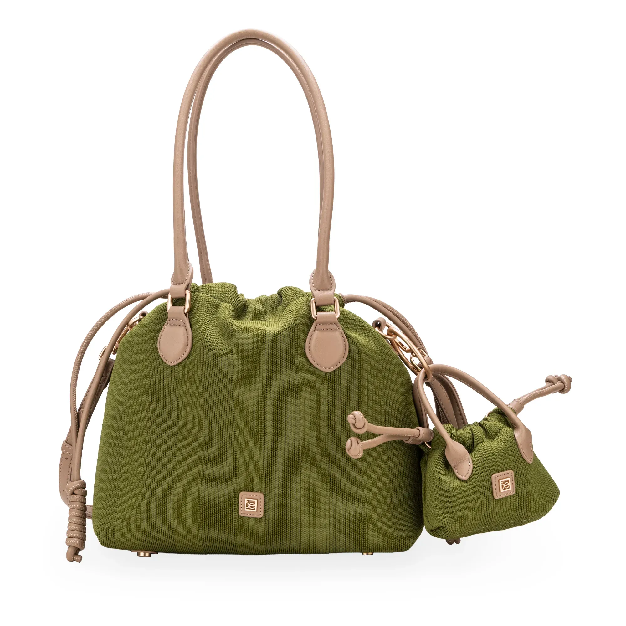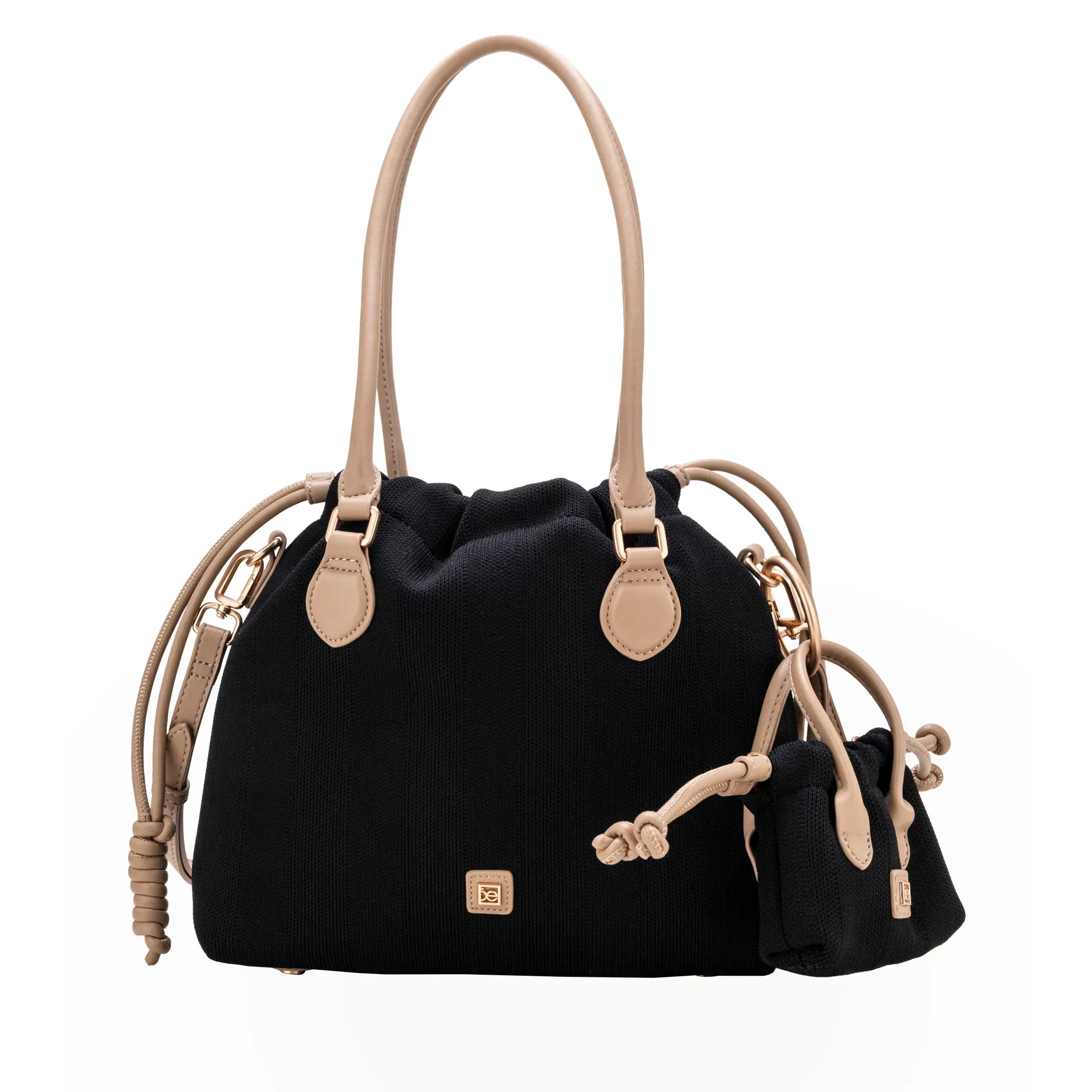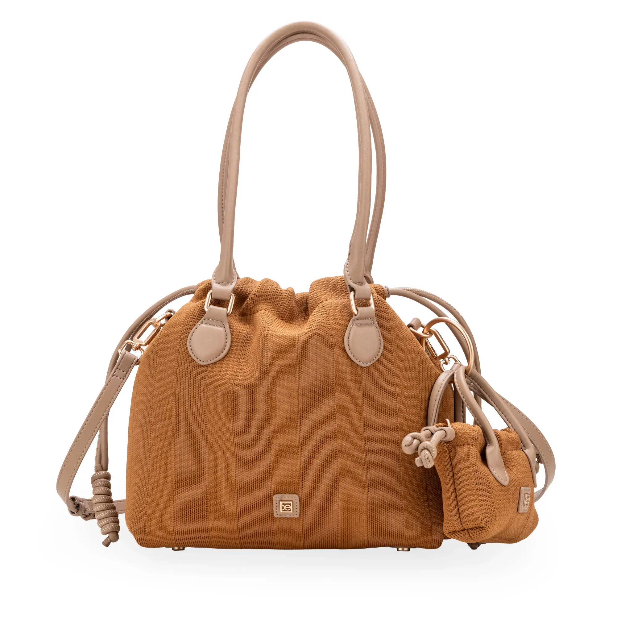 Bolsa Tote hecha con material textil. Cuenta con herraje metálico de monograma. Incluye charm desprendible de mini bolso. Asas al hombro reforzadas. Jaretas ajustables. Asa larga ajustable y removible.