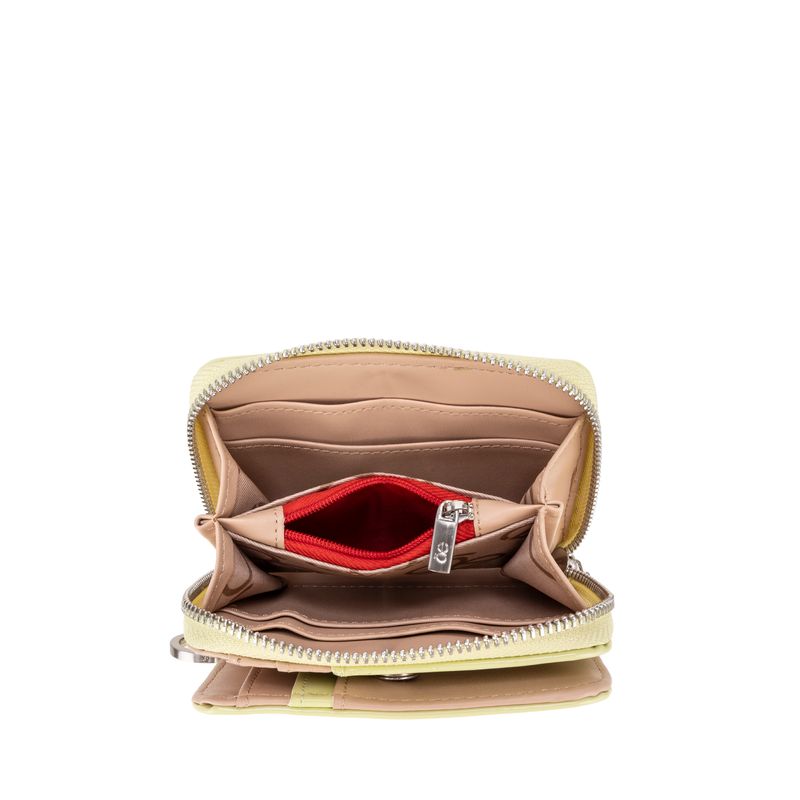 Billetera hecha con material charol. Cuenta con cierre metálico de larga duración. Tiene herraje de monograma. Maneral lateral de fácil uso. Apartado flap con múltiples espacios para tarjetas.