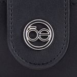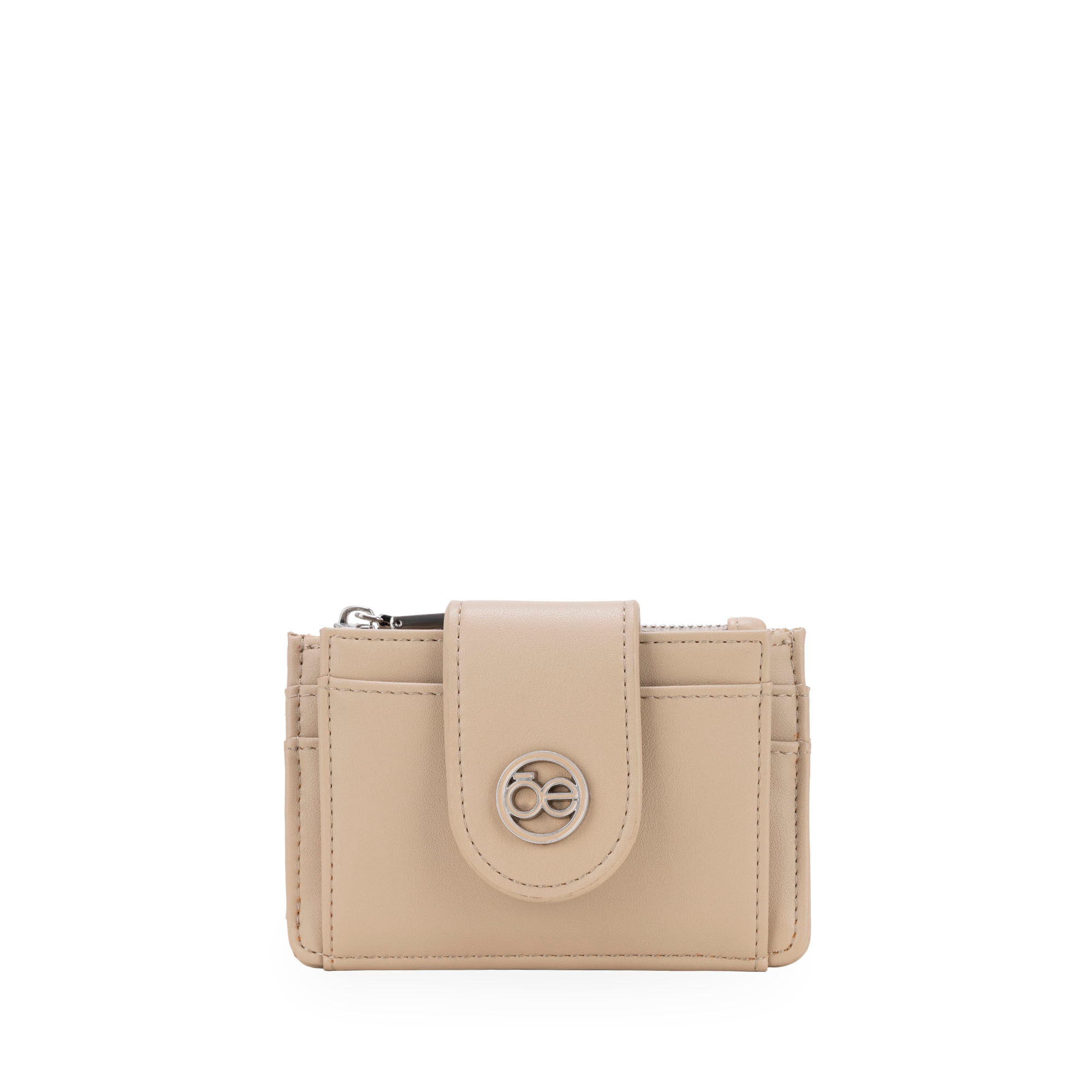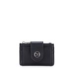 Billetera hecha con material vegano apariencia piel. Cuenta con herraje metálico de monograma. Múltiples espacios para tarjetas. Compartimento con cierre metálico para monedas.