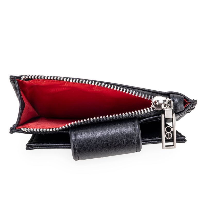 - Este producto tiene un RedPocket ®: Según antiguos preceptos orientales, el dinero debe resguardarse en una bolsa roja para conseguir abundancia y fortuna. Encuentra el RedPocket ® en todos nuestros productos, y la fortuna siempre estará contigo. - Material vegano apariencia piel - Herraje metálico de monograma - Múltiples espacios para tarjetas - Compartimento con cierre para monedas - 12.5 X 3.5 X 8.5 CM