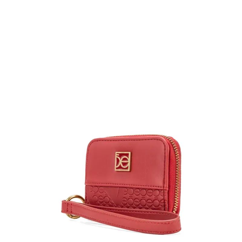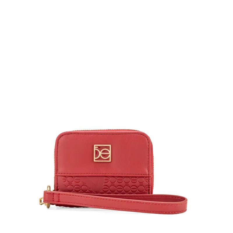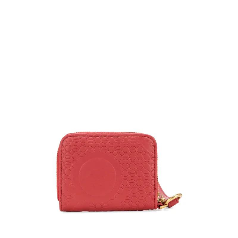 Billetera hecha con material vegano apariencia piel. Cuenta con cierre metálico de larga duración. Herraje metálico de monograma esmlatado al tono. Look troquelado de mmonograma. Maneral lateral de fácil uso desprendible. Monedero interno. Compartimentos internos.