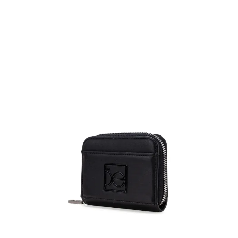 Billetera hecha con material vegano. Cuenta con cierre metálico de larga duración. Múltiples compartimientos internos para tarjetas y billetes. Tiene monograma en relieve.