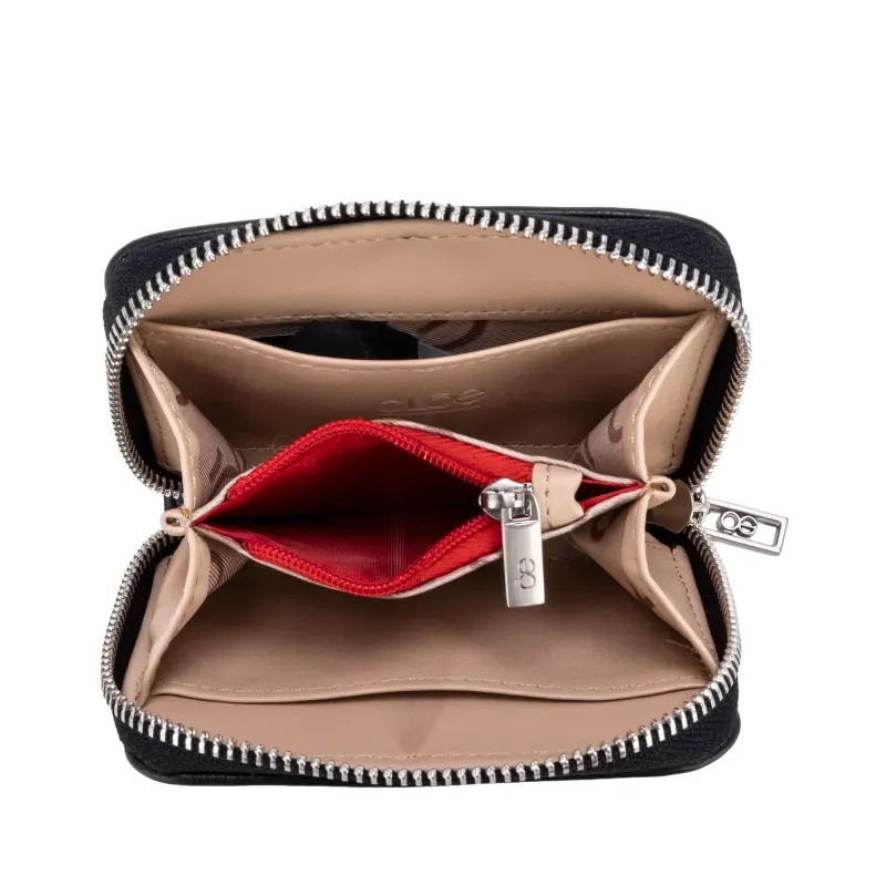 - Múltiples compartimentos internos para tarjetas y billetes