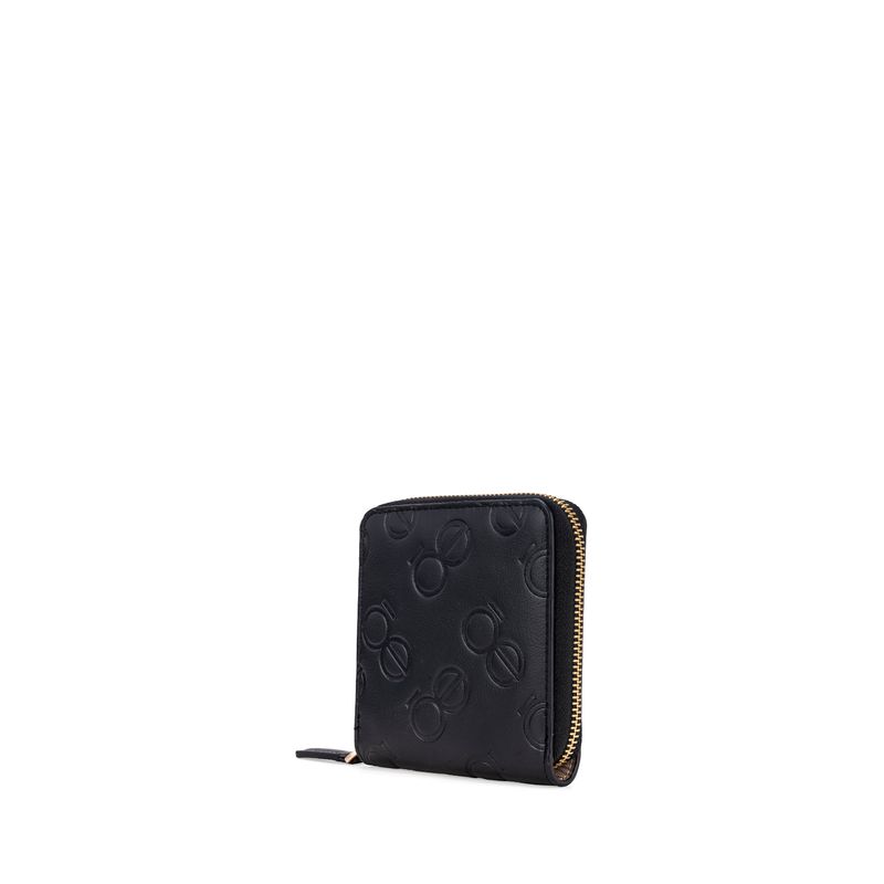 Cartera Chica Cierre Sencillo Monogramas Troquelados Color Negro