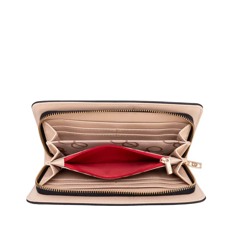 - Este producto tiene un RedPocket ®: Según antiguos preceptos orientales, el dinero debe resguardarse en una bolsa roja para conseguir abundancia y fortuna. Encuentra el RedPocket ® en todos nuestros productos, y la fortuna siempre estará contigo. - Material vegano apariencia piel - Herraje metálico de monograma - Cierre metálico de larga duración - Múltiples compartimentos internos para tarjetas y billetes - 21.5 X 3 X 11.5 CM