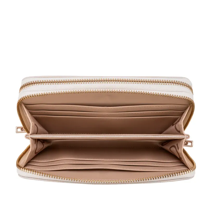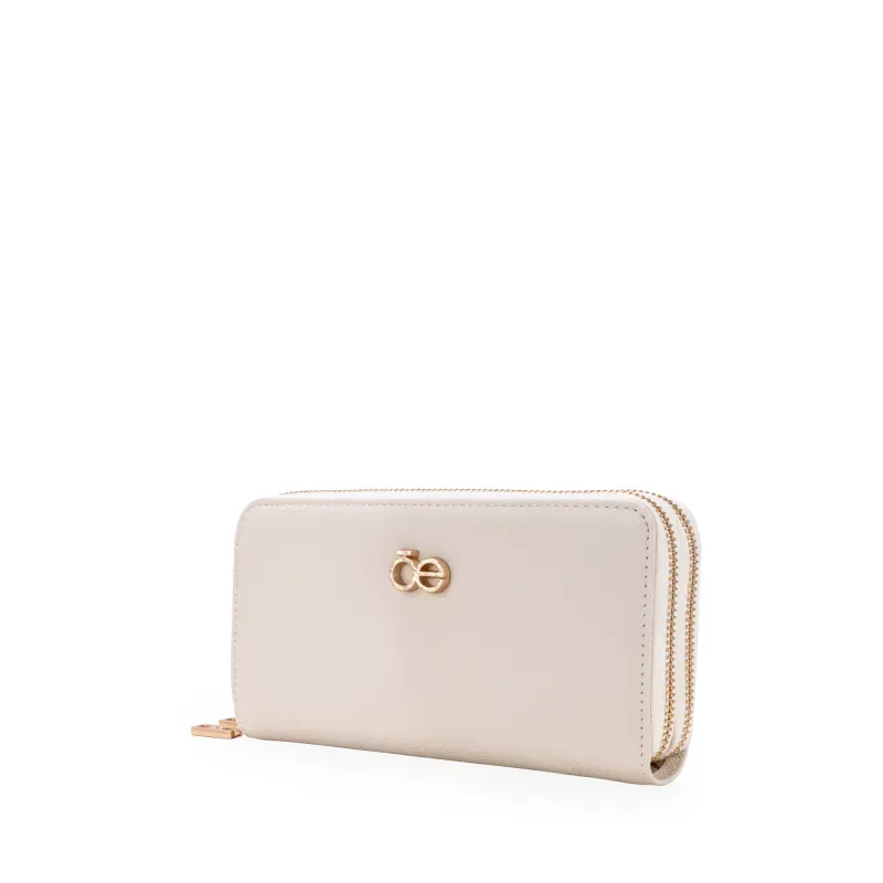 Cartera Grande Cierre Doble Con Herraje Color Beige