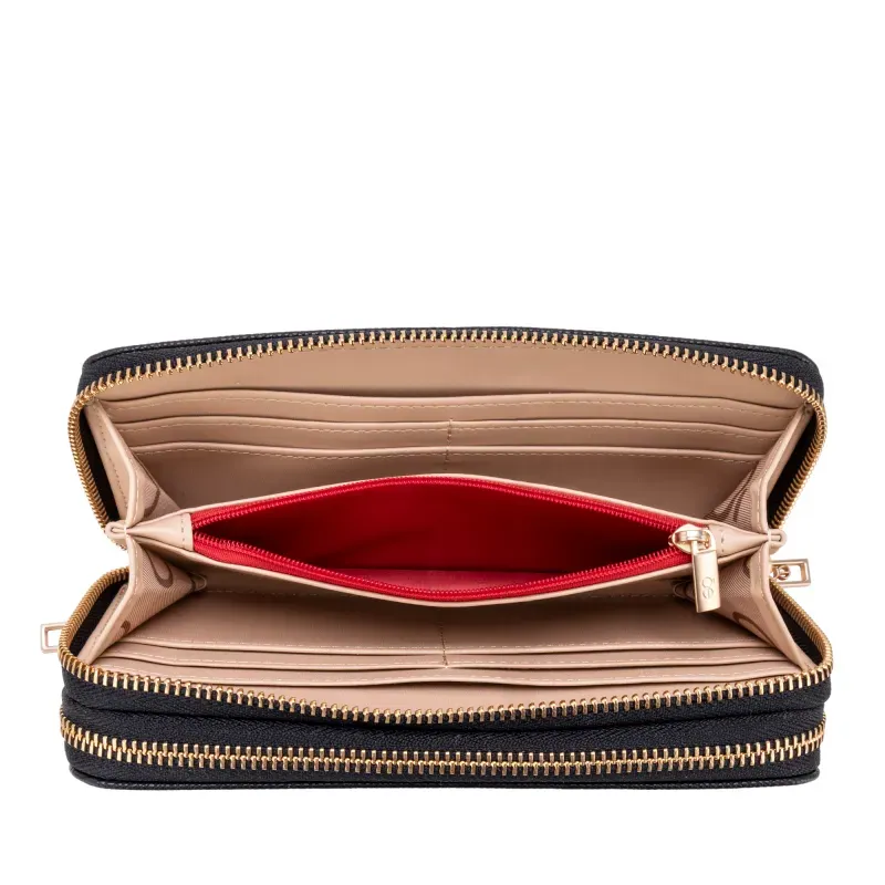 - Múltiples compartimentos internos para tarjetas y billetes