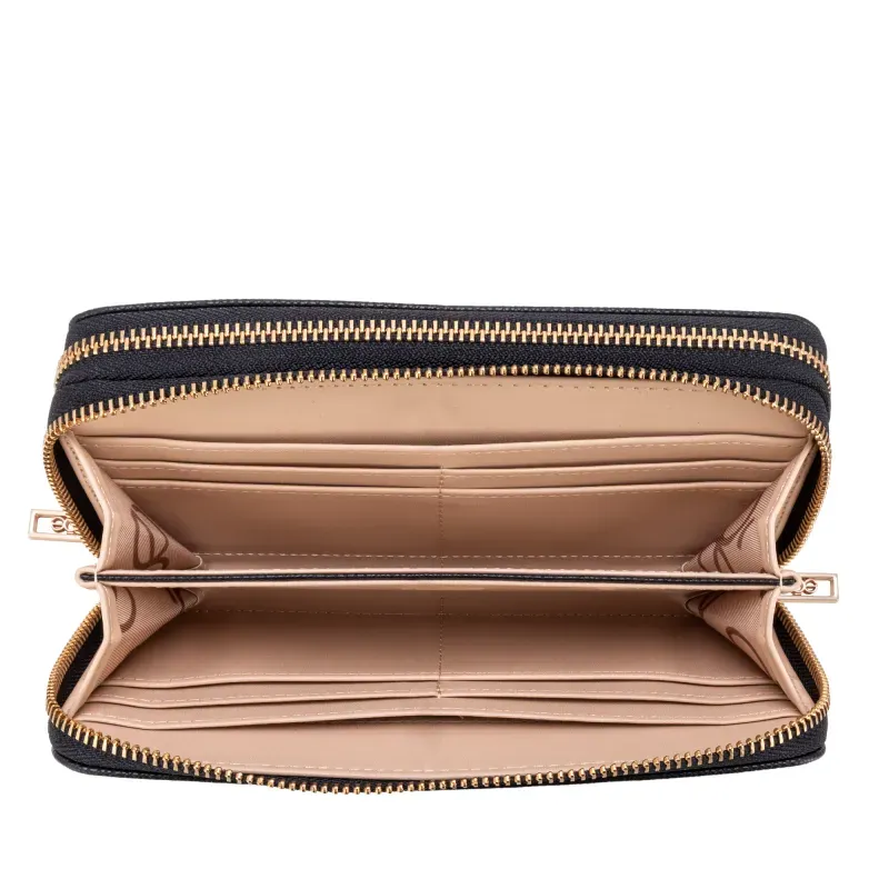 Cartera Grande Cierre Doble Con Herraje Color Negro
