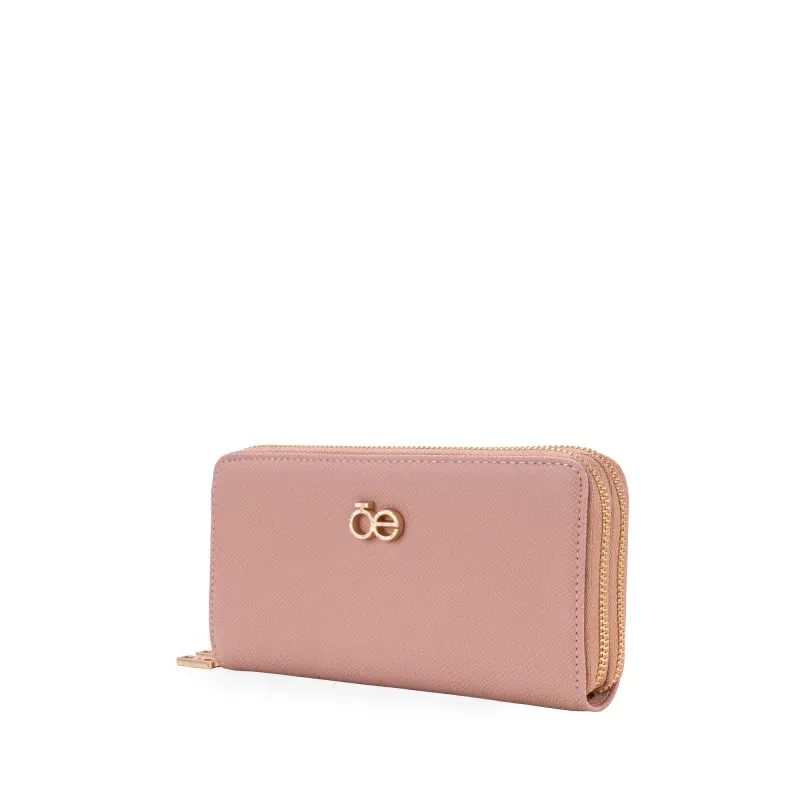 Cartera Grande Cierre Doble Con Herraje Color Rosa