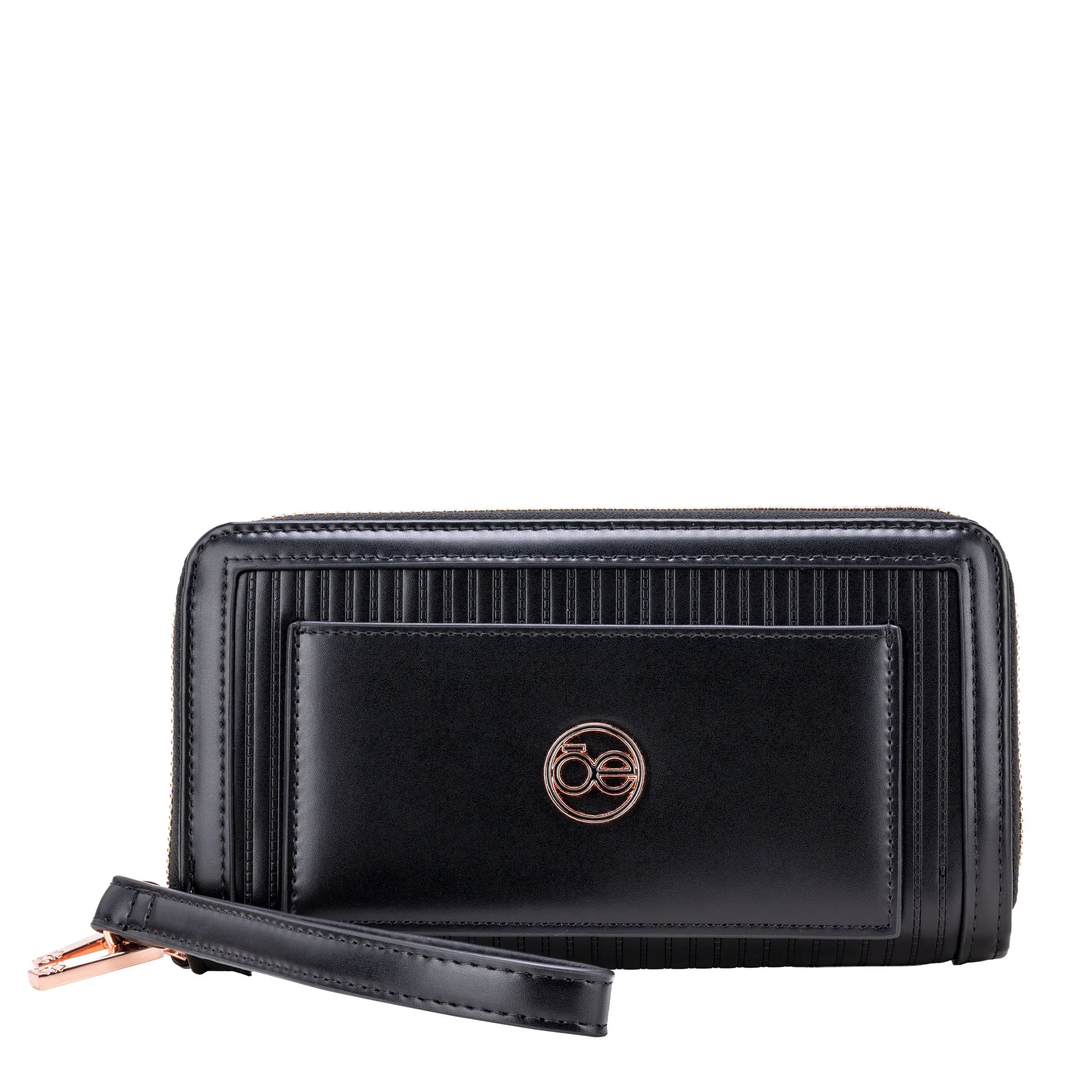 Billetera Cierre Doble hecha con material vegano. Cuenta con maneral de fácil uso desprendible. Cierre metálico de larga duración. Herraje metálico de monograma. Cuenta con múltiples compartimientos internos para tarjetas y billetes.