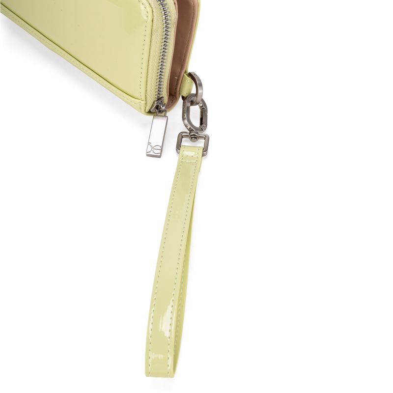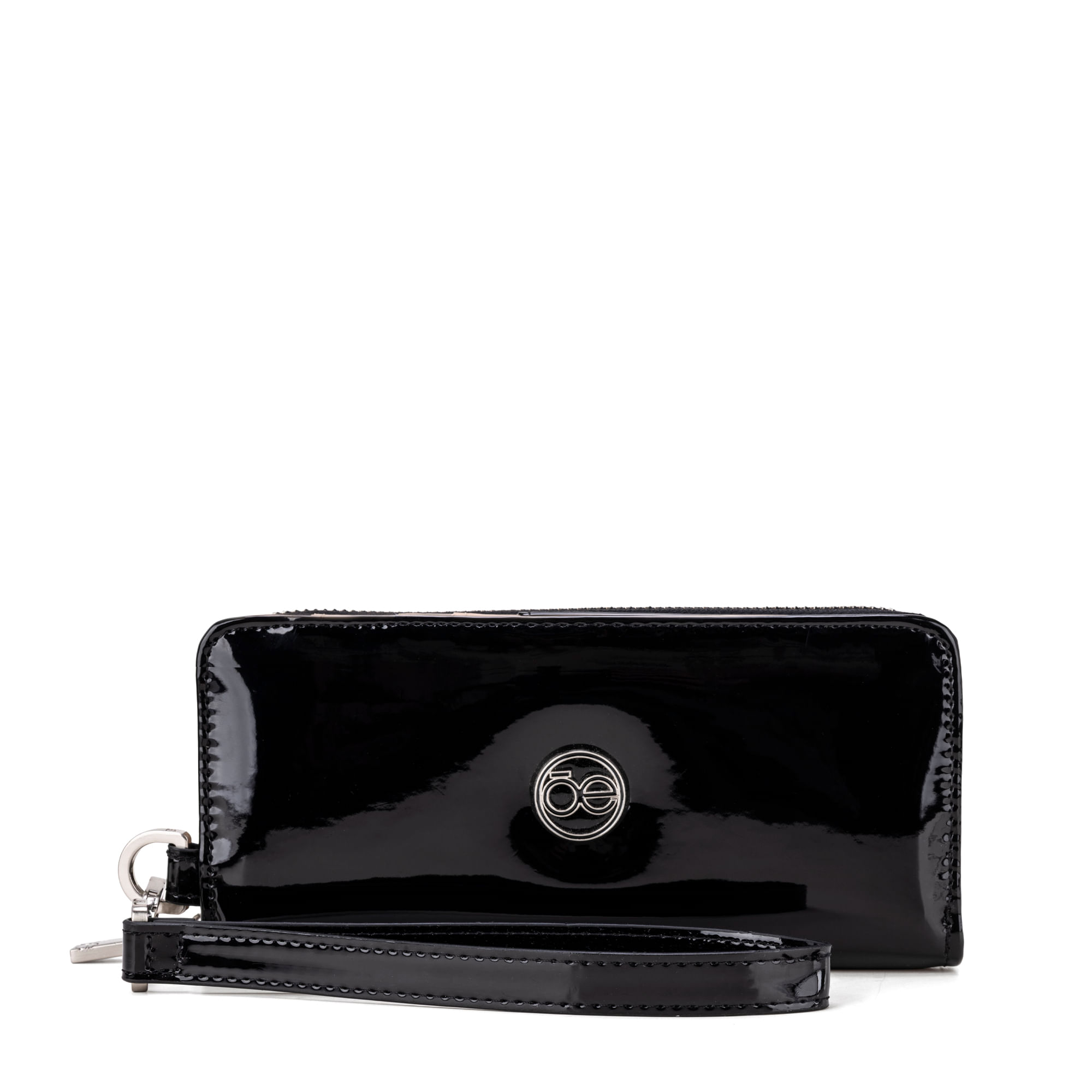Billetera hecha con material charol. Cuenta con cierre metálico de larga duración. Tiene herraje de monograma. Maneral lateral de fácil uso. Apartado flap con múltiples espacios para tarjetas.
