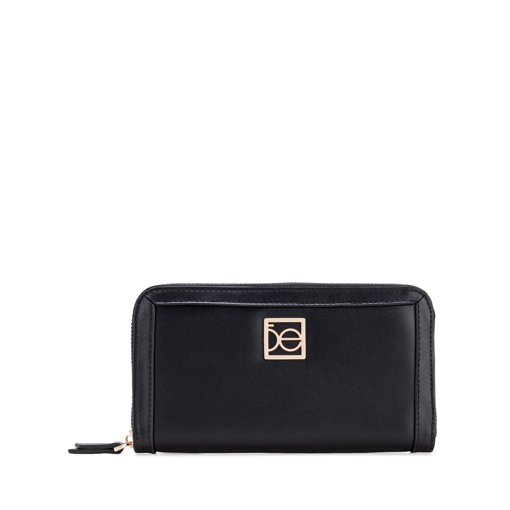 Billetera hecha con material vegano apariencia piel. Cuenta con cierre metálico de larga duración. Herraje de monograma. Múltiples compartimentos internos para billetes y tarjetas.