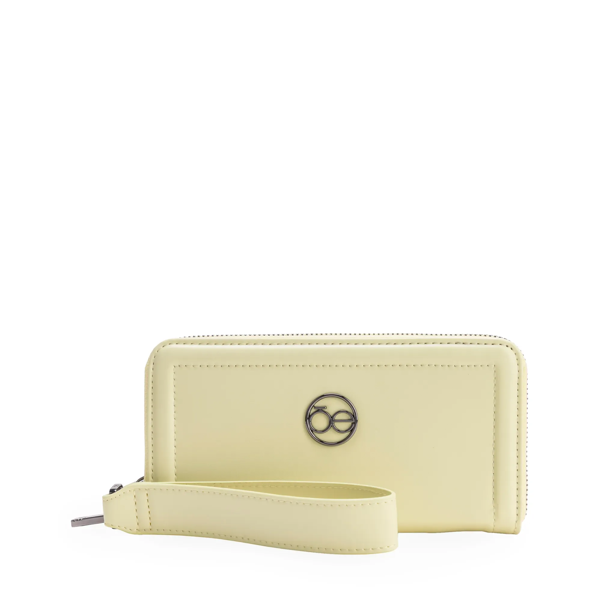 Billetera Cierre Sencillo hecha con material vegano apariencia piel. Cuenta con maneral de fácil uso desprendible. Herraje de monograma. Múltiples compartimientos internos para billetes y tarjetas.
