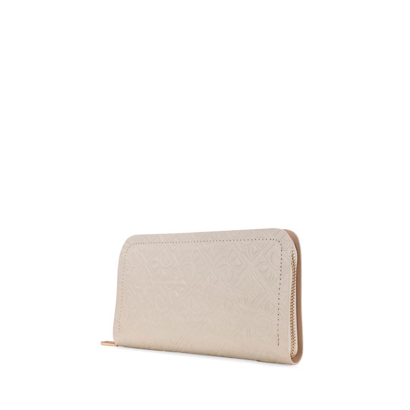 Cartera Grande Cierre Sencillo Con Look Monograma Color Beige