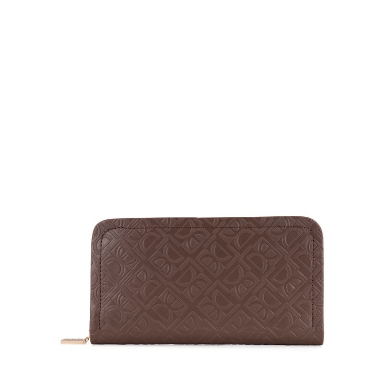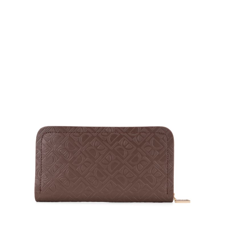Cartera Grande Cierre Sencillo Con Look Monograma Color Café