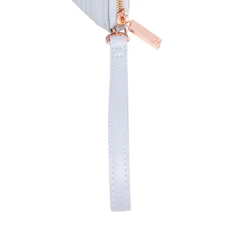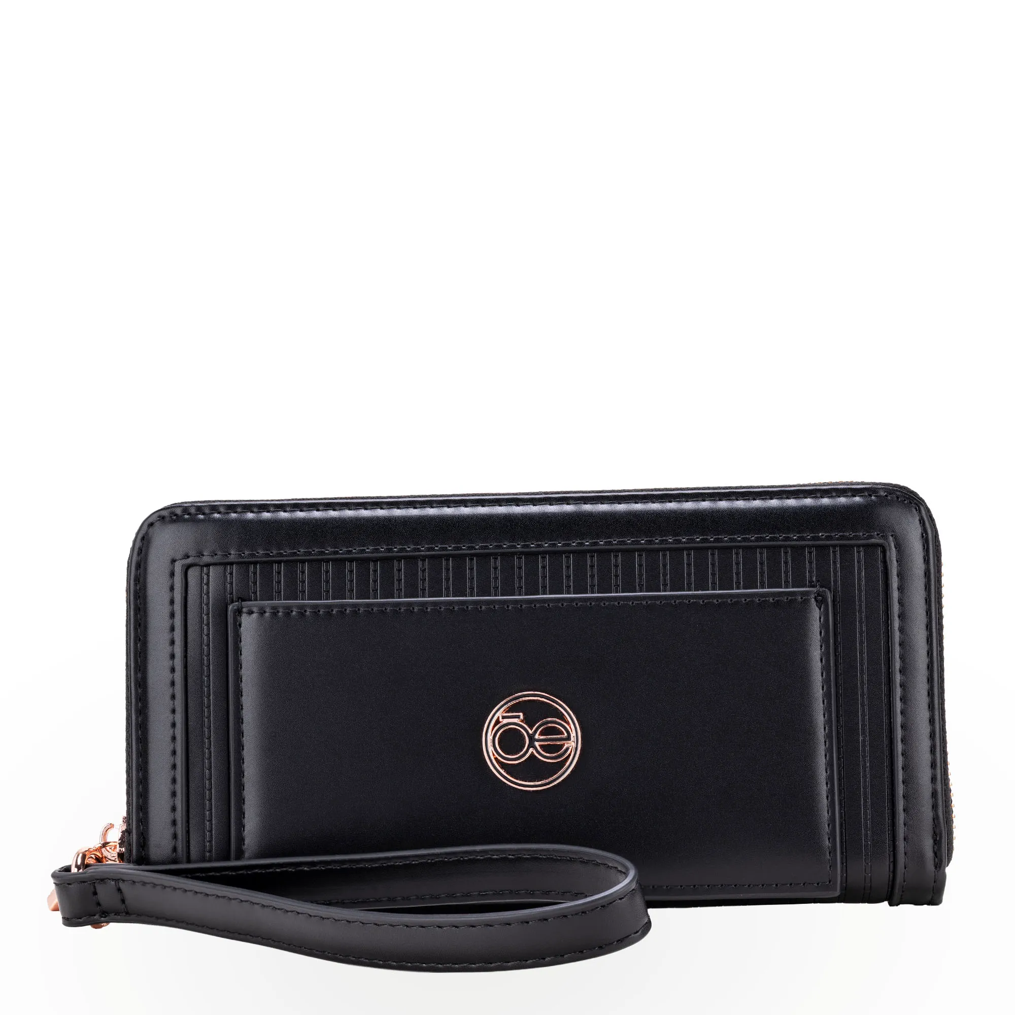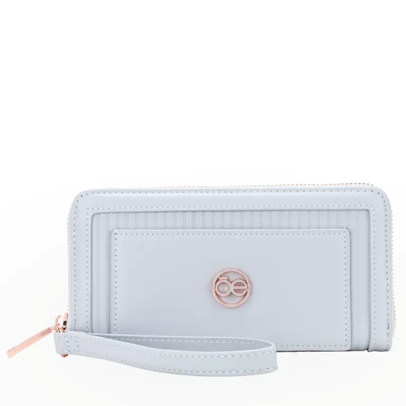 Billetera Cierre Sencillo hecha de material vegano. Cuenta con maneral de fácil uso desprendible. Múltiples compartimentos internos para tarjetas y billetes. Cierre metálico de larga duración. Tiene herraje metálico de monograma.