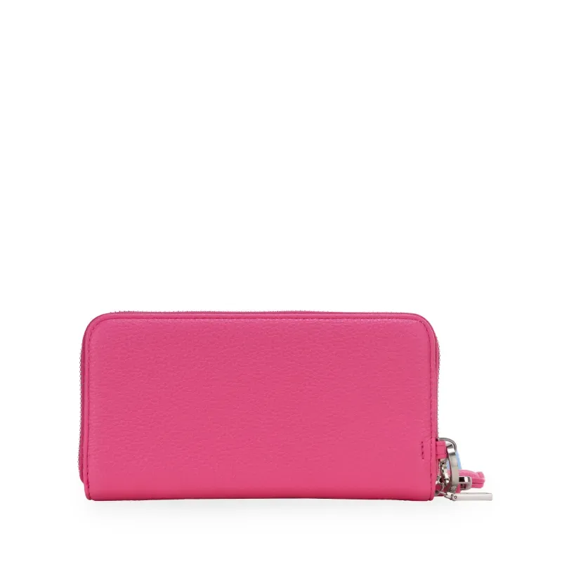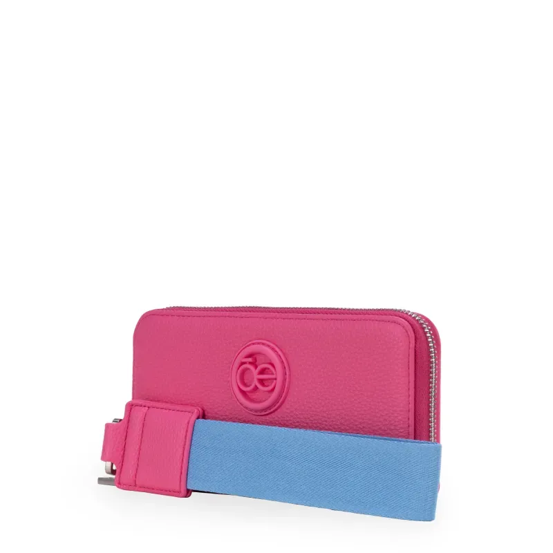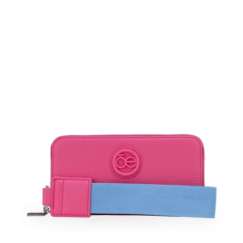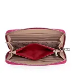Billetera hecha con material vegano apariencia piel. Cuenta con cierre metálico de larga duración. Tiene rubber de monograma. Maneral lateral de fácil uso. Múltiples compartimentos internos para billetes y tarjetas.