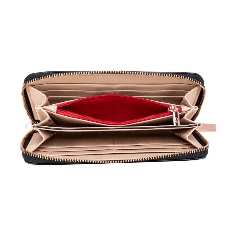 - Múltiples compartimentos internos para tarjetas y billetes