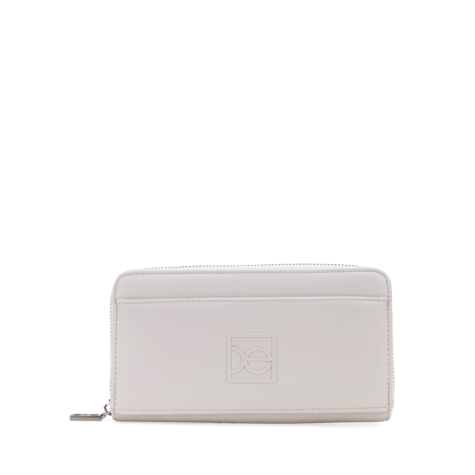 Billetera hecha con material vegano. Cuenta con cierre metálico de larga duración. Múltiples compartimientos internos para tarjetas y billetes. Tiene monograma en relieve.
