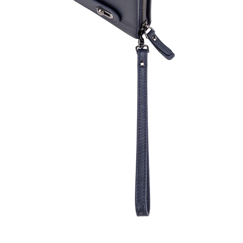 Billetera hecha con material piel genuina. Tiene cierre metálico de larga duración. Incluye maneral de fácil uso. Múltiples compartimentos internos para billetes y tarjetas.