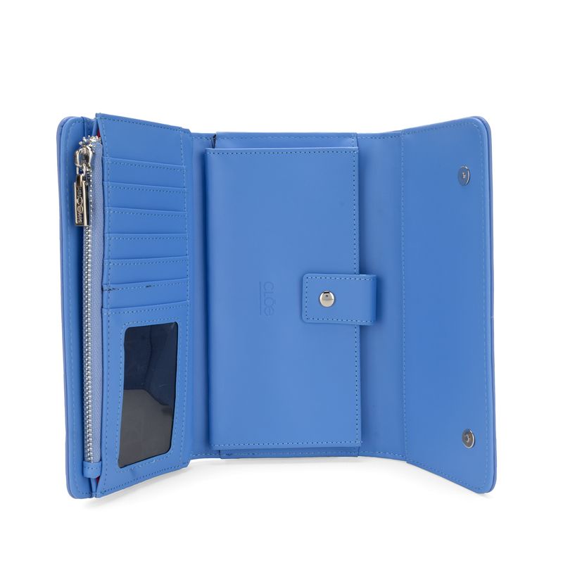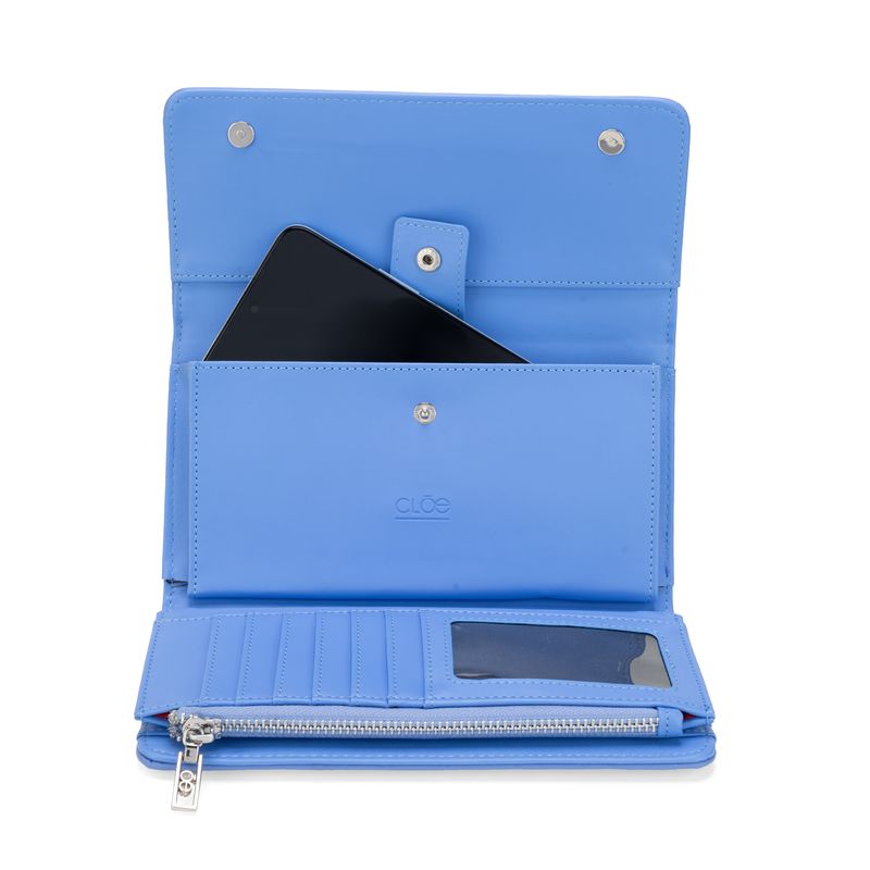 Billetera hecha de material vegano apariencia piel. Cuenta con cierre metálico de larga duración. Tapeta con broche magnético. Herraje metálico de monograma al tono. Troquelado de monograma. Múltiples compartimentos internos.