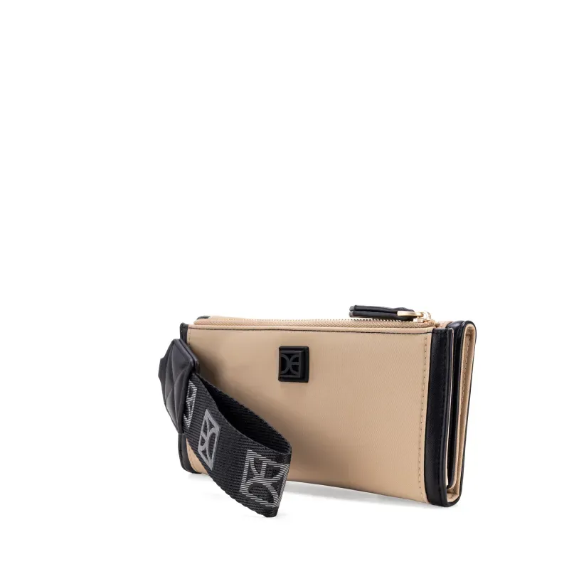 Billetera hecha de material textil. Cuenta con maneral de fácil uso desprendible. Rubber de monograma. Tiene Cierre metálico de larga duración.