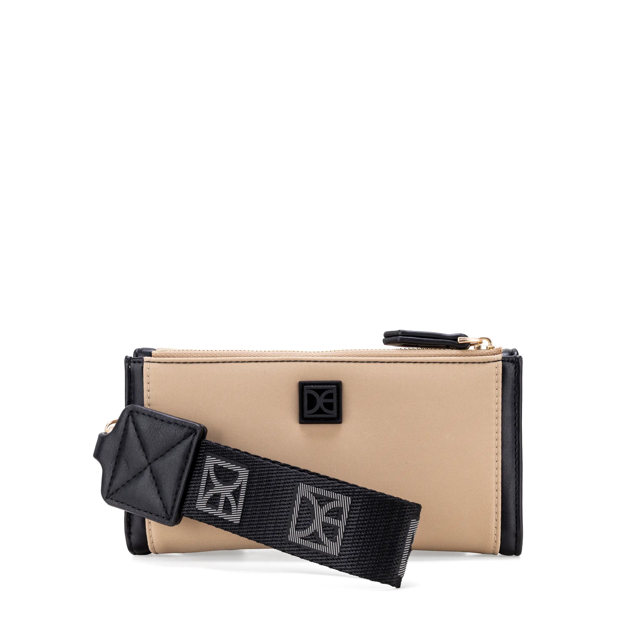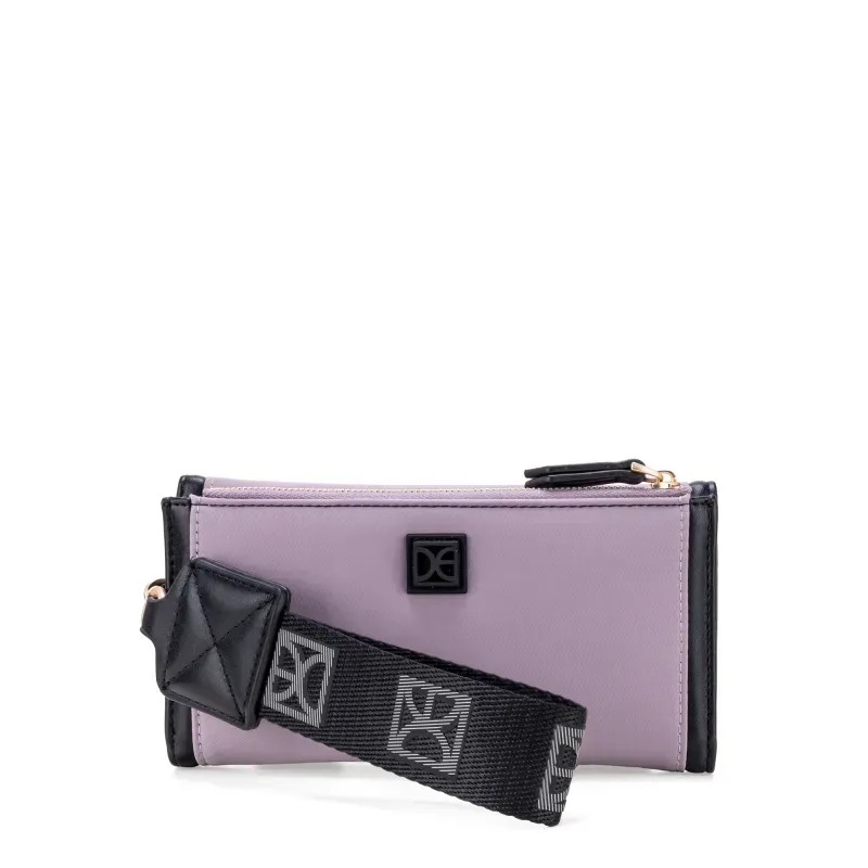 Billetera hecha de material textil. Cuenta con maneral de fácil uso desprendible. Rubber de monograma. Tiene Cierre metálico de larga duración.