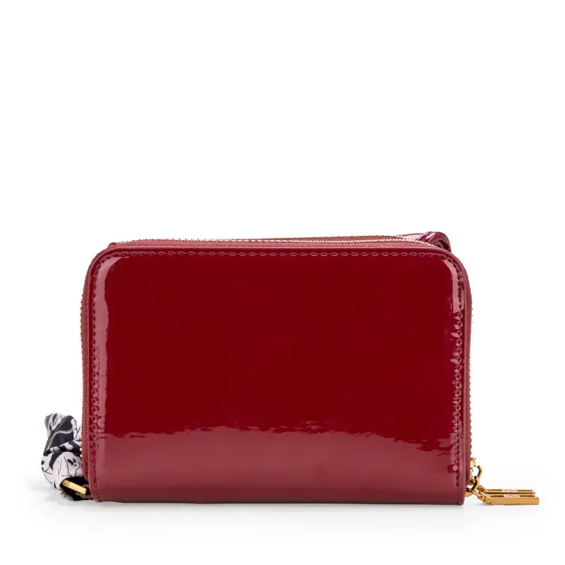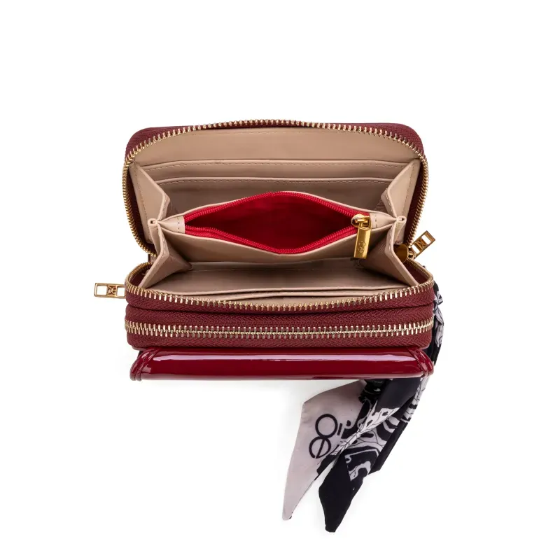 - Este producto tiene un RedPocket ®: Según antiguos preceptos orientales, el dinero debe resguardarse en una bolsa roja para conseguir abundancia y fortuna. Encuentra el RedPocket ® en todos nuestros productos, y la fortuna siempre estará contigo. - Material vegano apariencia glossy - Broche magnético - Herraje de monograma - Mascada multiusos removible - Múltiples compartimentos internos para tarjeta y billetes - 15.5 X 4 X 11 CM