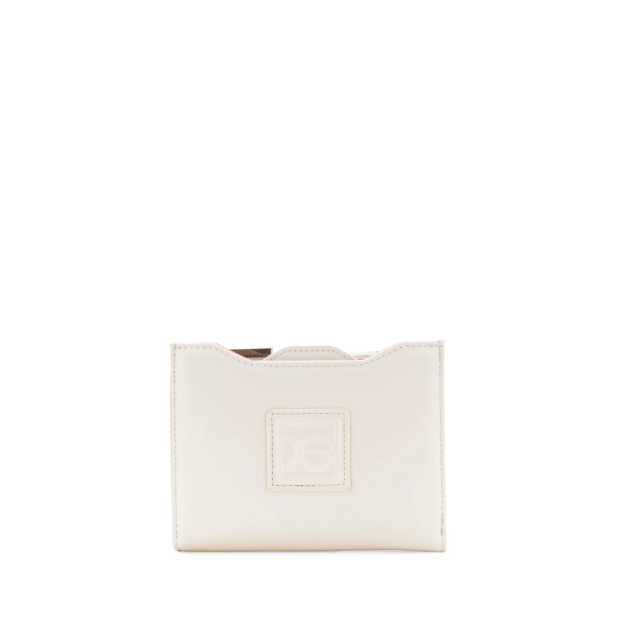 Billetera hecha de material vegano de apariencia piel. Cuenta con broche magnético. Monedero. Tarjetero removible. Parche de monograma. Múltiples compartimentos internos para tarjetas y billetes.