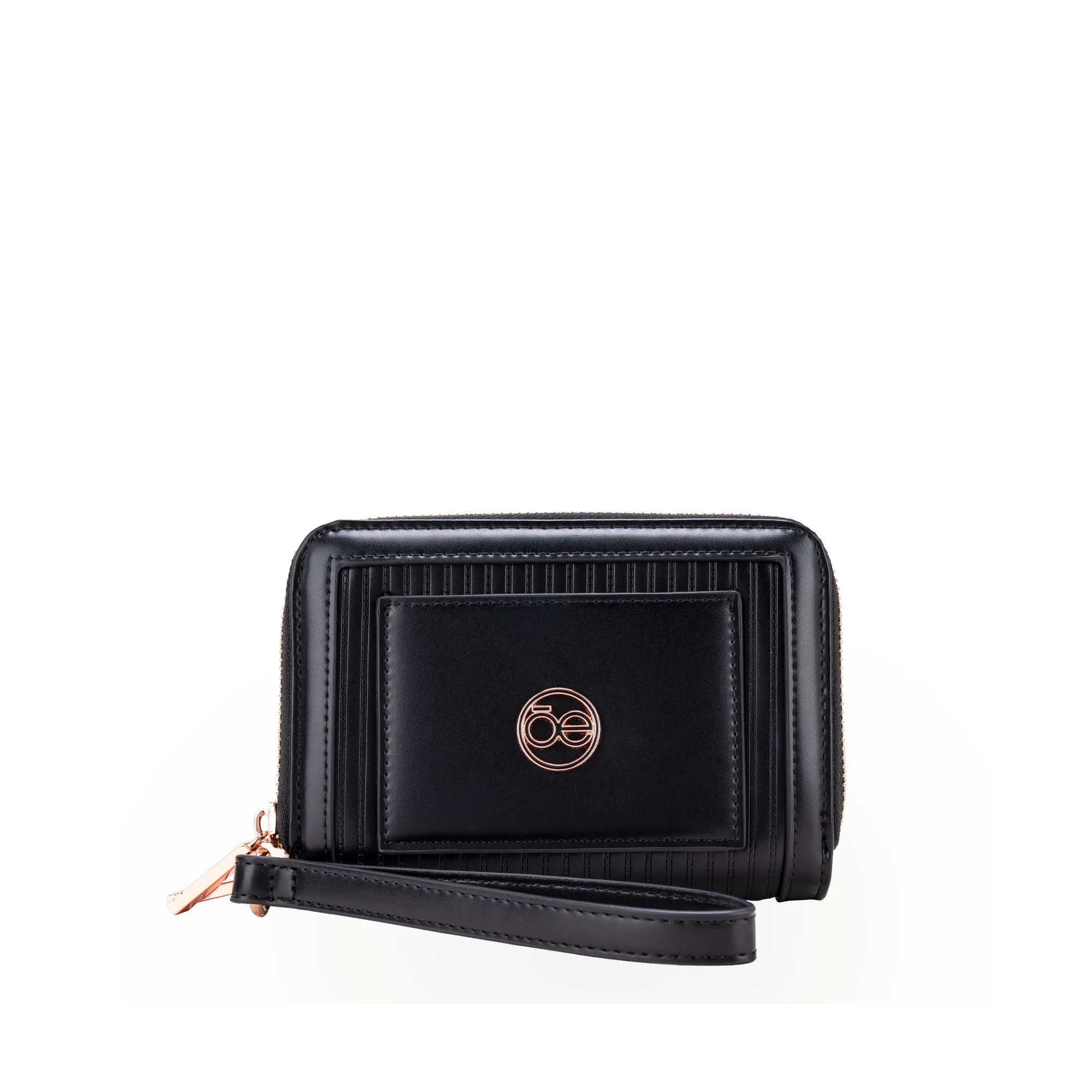 Billetera Cierre Doble hecha de material vegano. Cuenta con maneral de fácil uso desprendible. Múltiples compartimentos internos para tarjetas y billetes. Cierre metálico de larga duración. Tiene herraje metálico de monograma.
