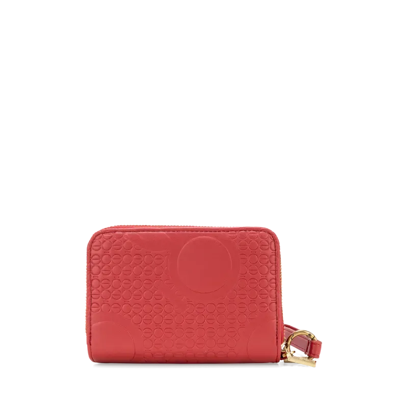 Billetera hecha con material vegano apariencia piel. Cuenta con cierre metálico de larga duración. Herraje metálico de monograma esmlatado al tono. Look troquelado de mmonograma. Maneral lateral de fácil uso desprendible. Monedero interno. Múltiples compartimentos internos para tarjetas y billetes.
