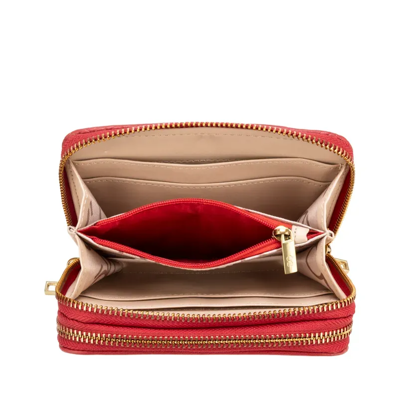 - Este producto tiene un RedPocket ®: Según antiguos preceptos orientales, el dinero debe resguardarse en una bolsa roja para conseguir abundancia y fortuna. Encuentra el RedPocket ® en todos nuestros productos, y la fortuna siempre estará contigo. - Material vegano apariencia piel - Cierre doble metálico de larga duración - Look troquelado de monograma - Herraje de monograma esmaltado al tono - Maneral lateral de fácil uso desprendible - Monedero interno - Múltiples compartimentos internos para tarjetas y billetes - 16 X 5 X 11.5 CM