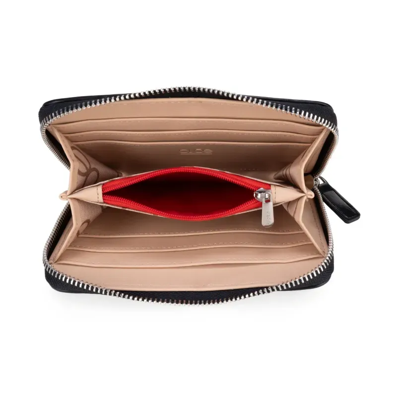 - Este producto tiene un RedPocket ®: Según antiguos preceptos orientales, el dinero debe resguardarse en una bolsa roja para conseguir abundancia y fortuna. Encuentra el RedPocket ® en todos nuestros productos, y la fortuna siempre estará contigo. - Material vegano apariencia piel - Cierre metálico de larga duración - Multiples compratimientos internos - Maneral lateral de fácil uso - 16.5 X 3 X 10.5 CM