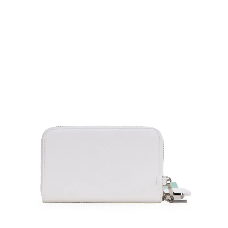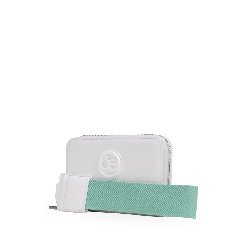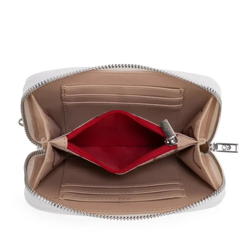 Billetera hecha con material vegano apariencia piel. Cuenta con cierre metálico de larga duración. Tiene rubber de monograma. Maneral lateral de fácil uso. Múltiples compartimentos internos para billetes y tarjetas.