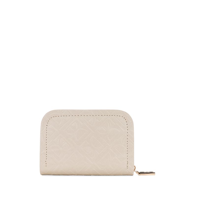 Cartera Mini Cierre Sencillo Con Look Monograma Color Beige