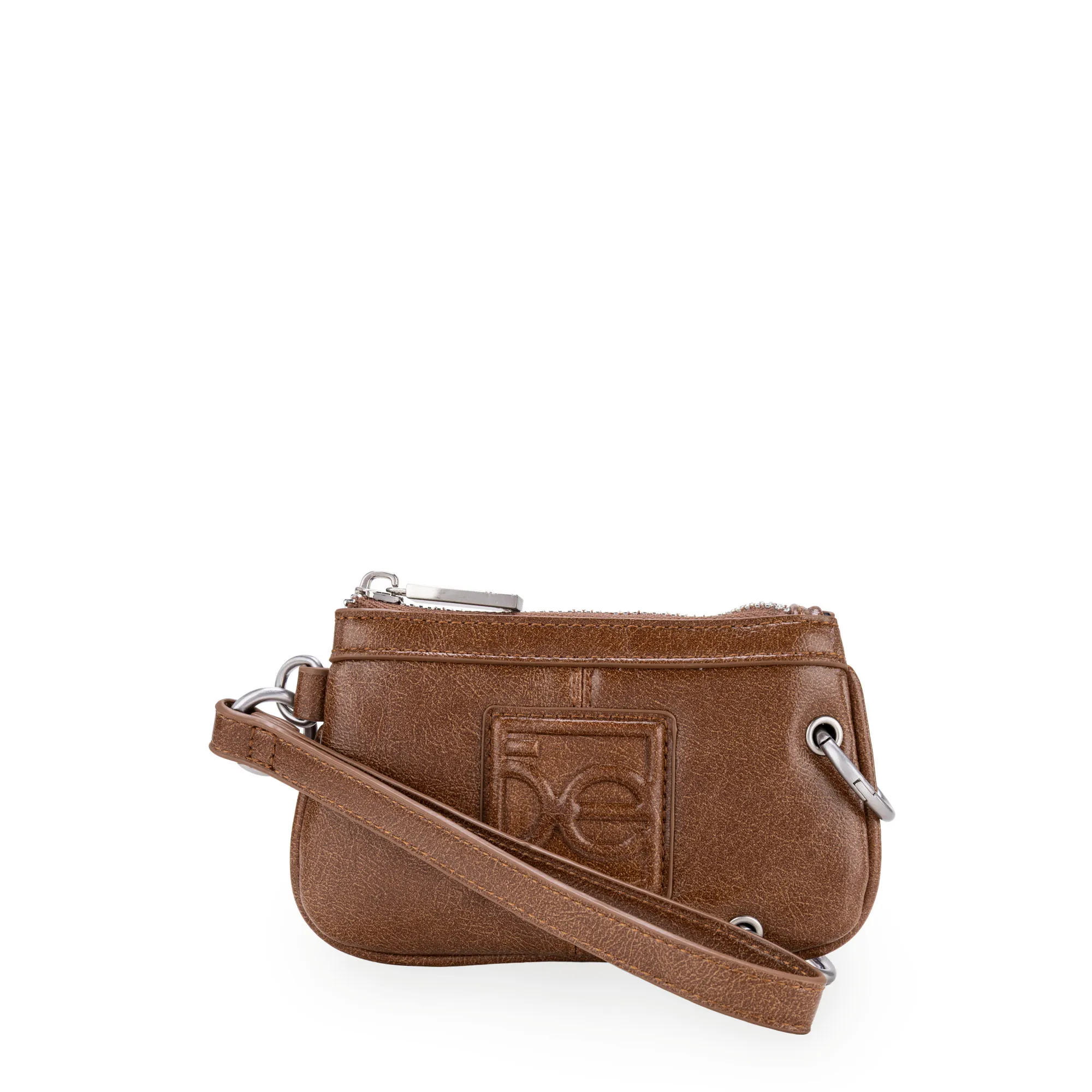 Billetera hecha de material vegano. Cuenta con monograma en relieve. Accesorios removibles. Incluye maneral de fácil uso removible. Tiene cierre metálico de larga duración.