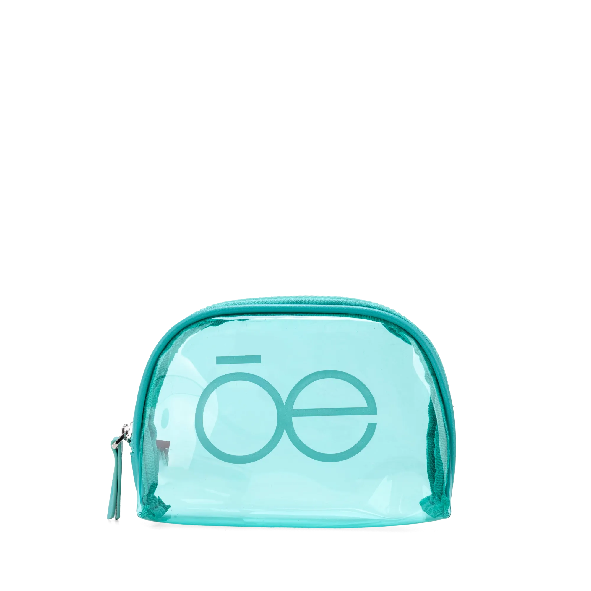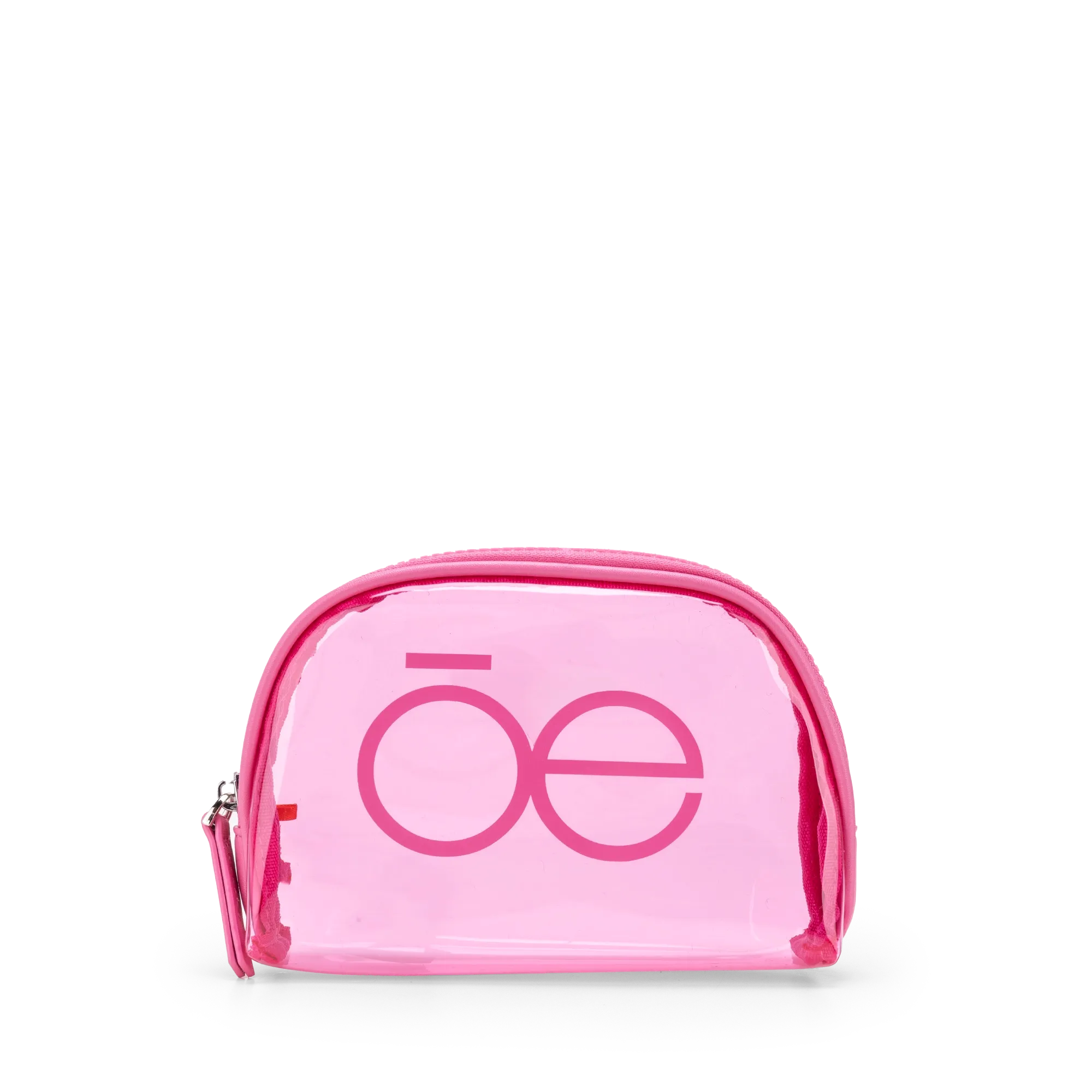 Cosmetiquera hecha con material mica. Cuenta con cierre sencillo. Estampado de monograma.